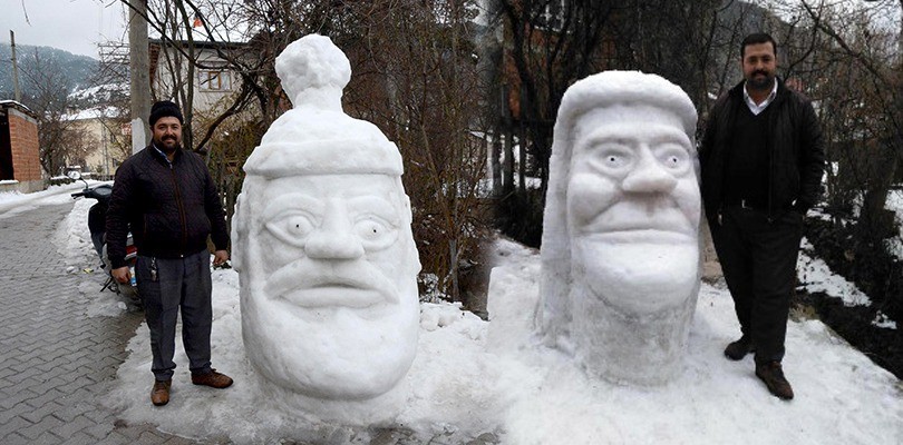 Sokak kedileri için kardan ev yapan Selçuk Sönmez, geçtiğimiz yıllarda mahallenin çeşitli yerlerinde kardan heykeller yapılması ile biliniyor.