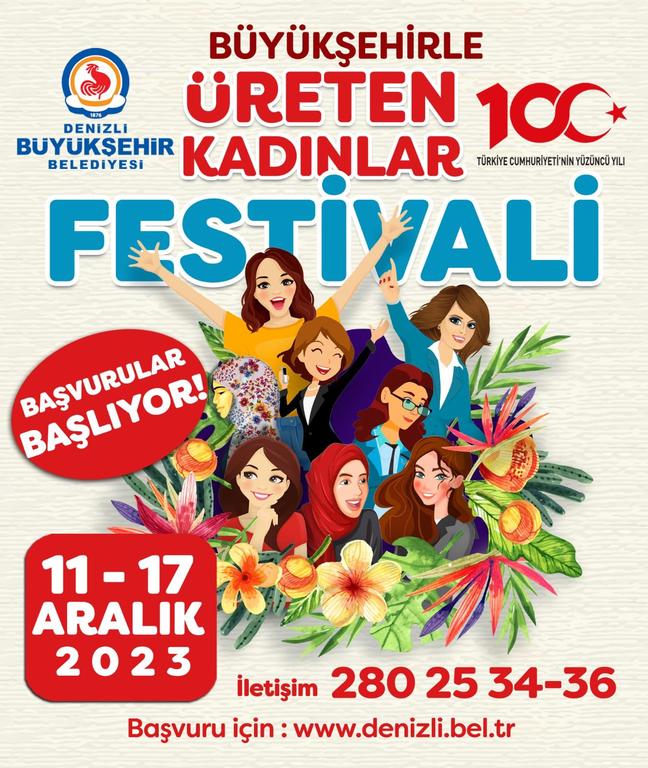 Denizli Büyükşehir Belediyesinin 3’ncü kez gerçekleştireceği Büyükşehirle Üreten Kadınlar Festivali, 19-20-21 Ocak 2024’te düzenlenecek. El emeği göz nuru ürünlerini sergileyerek aile ekonomilerine katkıda bulunmak isteyen kadın girişimciler, festivalde yer almak için 11-17 Aralık tarihleri arasında www.denizli.bel.tr adresinden ücretsiz başvuru yapabilecek.