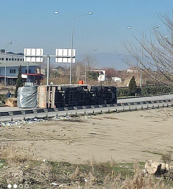 Kaza, Denizli-Ankara Çevre Yolu üzerinde meydana geldi. Edinilen bilgilere göre; seyir halindeyken sürücüsünün kontörlünden çıkan saman yüklü tır, virajı alamayarak devrildi. Meydana gelen kaza sonrası tırın dorsesinde bulunan saman balyaları yola savruldu. İlk müdahaleyi vatandaşların yaptığı kazada, sürücü kendi imkanlarıyla çıkmayı başardı. Olay yerine gelen ekipler trafiği kontrollü bir şekilde sağlarken, başka bir tır ile saman balyaları toplandı.