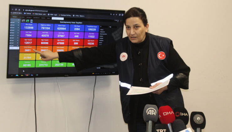 Çevre, Şehircilik ve İklim Değişikliği Bakanlığı Yapı İşleri Genel Müdürü Banu Aslan, Kahramanmaraş merkezli depremlerle ilgili 10 ilde başlayan ve yüzde 35’i tamamlanan hasar tespit çalışmalarında 7 bin 854 yıkık ya da acilen yıkılması gereken bina, 12 bin 617 binanın ağır hasarlı ve oturulamaz halde olduğunun belirlendiğini söyledi. Aslan, Gaziantep AFAD Koordinasyon Merkezi’nde yaptığı basın açıklamasında hasar tespit çalışmalarının inşaat mühendislerinden oluşan 6 bin personel ile başladığını belirtti. Hasarsız ya da az hasarlı ev sahiplerinin evlerine girebileceğini ifade eden Genel Müdür Aslan, ”6 Şubat 2023 Kahramanmaraş depreminde 10 ilde hasar meydana geldi. Hasar tespit çalışmaları 10 ilde devam ediyor. 10 ilde 132 bin 898 bina incelendi. Bu binalarda 761 bin 104 bağımsız bölüm incelenmiş oldu. Bu incelemelerde bina bazlı olarak 7 bin 584 adedi yıkık, ya da acil yıktırılması gereken yapı, 12 bin 617 adedi de ağır hasarlı yani kullanılamaz oturulamaz yapı olarak tespit edildi. Bunların bağımsız bölüm olarak karşılığı ise 100 bindir. Yani 100 bin bağımsız bölüm, oturulması, kullanılması mümkün değil. Üç bin binanın orta hasarlı olduğu görülüyor. Bu da güçlendirme yapılmadan kullanılamaz durumda olduğu anlamına geliyor 26 bin 603 konut, bu şekilde güçlendirme olmadan kullanılamaz halde olduğunu görüyoruz. 31 bin 791 az hasarlı, 60 bin 185 bin yapı ise hasarsız, 91 bin yapı az hasarlı ya da hasarsız görülüyor. Bağımsız bölüm olarak karşılığına bakıldığında ise 563 bin gibi konuta denk geliyor. Bunlar da depremden oturulamayacak durumda bir hasar almadığı anlamına geliyor. 311 bin 713 yapı hiç hasar almamış. 252 bin 722 ise az hasar almış, sıva çatlağı, boya dökülmesi gibi yapısal bir hasar almamış anlamına geliyor. Vatandaşlar evlerinin hasarsız olduğunu görürlerse evlerine diledikleri gibi girebilirler. Az hasarlı olanlar da dilerse evlerine girebilirler” dedi.