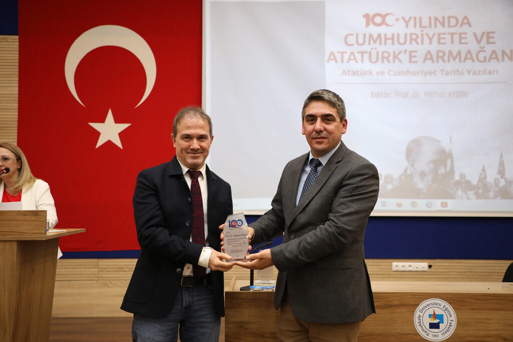 Panelin ardından editörlüğünü Prof. Dr. Mithat Aydın’ın yaptığı Cumhuriyetimizin 100. Yılına ithafen Sosyal Bilgiler Ana Bilim Dalı öncülüğünde, PAÜ Eğitim Fakültesi’nin yayını olarak hazırlanan ve yirmi bilim insanının katkı sunduğu “100. Yılında Cumhuriyete ve Atatürk’e Armağan” adlı kitabın tanıtımı yapıldı.