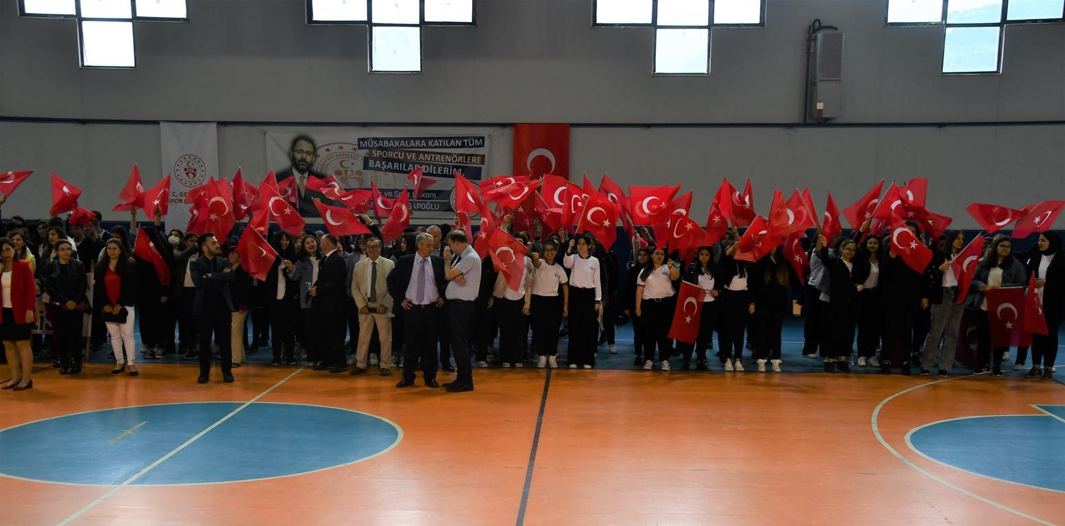 İlçe Gençlik ve Spor Müdürlüğü öğrencilerinin karate halk oyunları gösterisinin ardından, dart, masa tenisi, okçuluk ve karate dallarında dereceye giren öğrencilere ödüllerini, Kaymakam Murat Sarı, Belediye Başkanı Mustafa Şevik, İlçe Emniyet Müdürü Murat Kale ile İlçe Jandarma Komutanı Bekir Cinkara verdi.