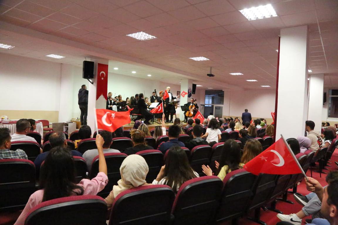Birbirinden güzel eserleri seslendiren Pamuk Üniversitesi oda orkestrası konser sonunda ayakta alkışlandı.