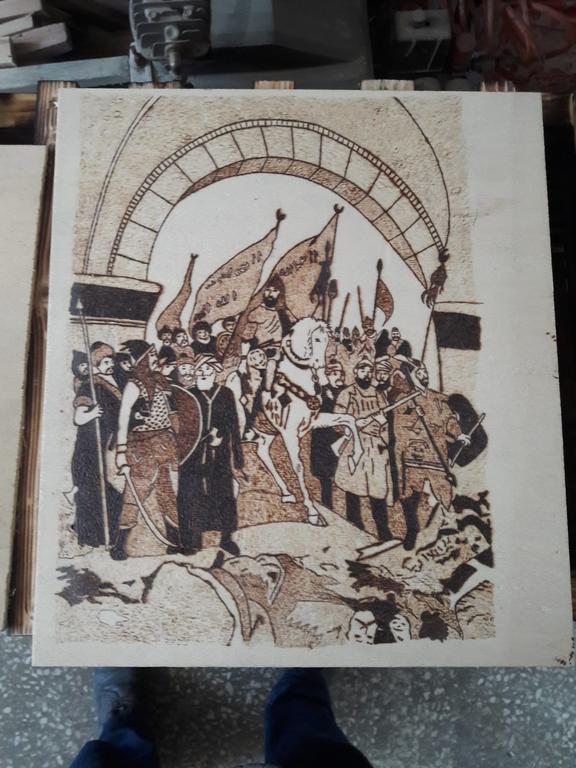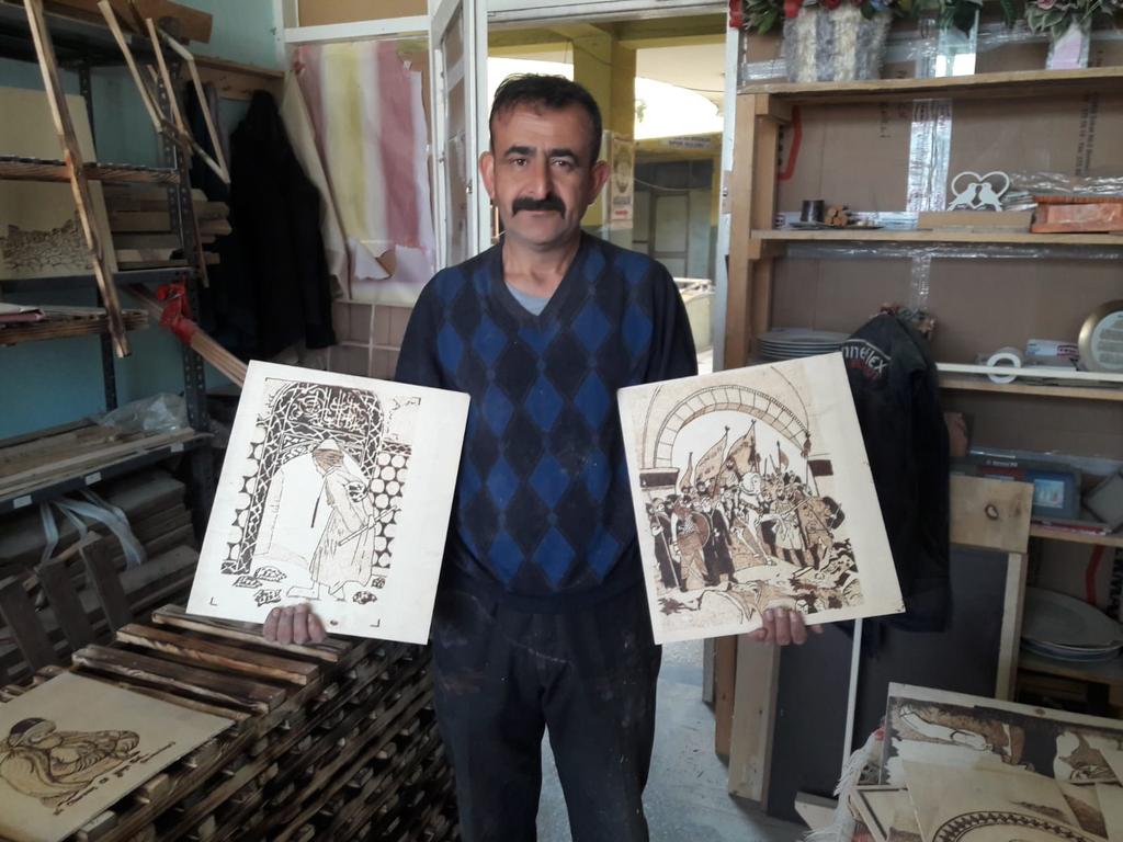 Ahşap yakma sanatıyla uğraşan Hasan İsmail Yavuz’un yaptığı tablolar ilgi görüyor. İnternette videoları izleyerek ahşap yakma sanatını öğrenen Yavuz, Her türlü Ayet, Dua ve kişiye özel portre Aile tablosu çalışması yaptığını söyledi. Kaligrafi- Hat sanatıylada uğraşan Hasan İsmail Yavuz, “ 2006 yılından beri yapıyorum. Askerdeyken desinatördüm. Askerden geldikten sonra merak saldım. Kendi kendime öğrendim. Daha sonra kursa gidip kendimi geliştirdim. İki yıl Pamukkale Halk Eğitimde hat kursu verdim. Daha sonra ahşap yakma ahşap oyma ve ahşap hediyelik eşya işine merak saldım. Elimden geldiği kadar bir şeylerle uğraşmaya gayret ediyorum. Ahşap yakma sanatını gördüm. İnternette hoşuma gitti. Videoları seyrettim. Evde kendim yapmaya başladım. Önce basitlerden sonra zorlaştırarak tablolar yapmaya başladım. Her türlü Ayet, Dua ve kişiye özel portre Aile tablosu çalışmaları yapıyorum. Isı ayarlı havya kalemi ile yapıyorum” dedi.