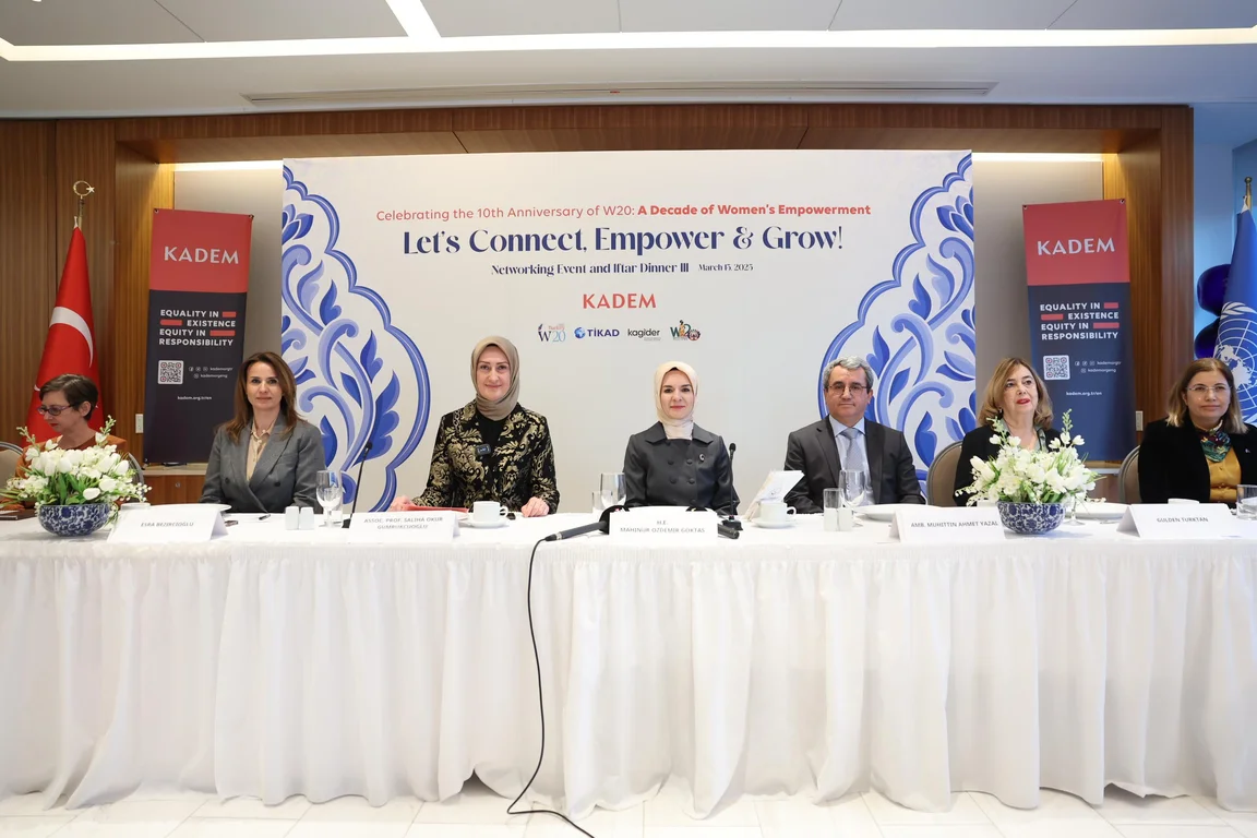 Göktaş, Kadın ve Demokrasi Vakfı (KADEM) tarafından Türkevi’nde gerçekleştirilen iftarda, Cumhurbaşkanı Recep Tayyip Erdoğan’ın liderliğinde Türkiye’nin G20 dönem başkanlığında kurulan Women 20’nin kadın-erkek eşitliğini küresel ekonomi politikalarının merkezine taşıyarak değişim için katalizör olduğunu belirtti.
