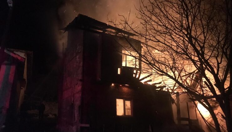 Diğer itfaiye ekiplerinin olay yerine ulaşmasıyla söndürülen yangında, 2 katlı ahşap ev tamamen yanarak kullanılamaz hale geldi.