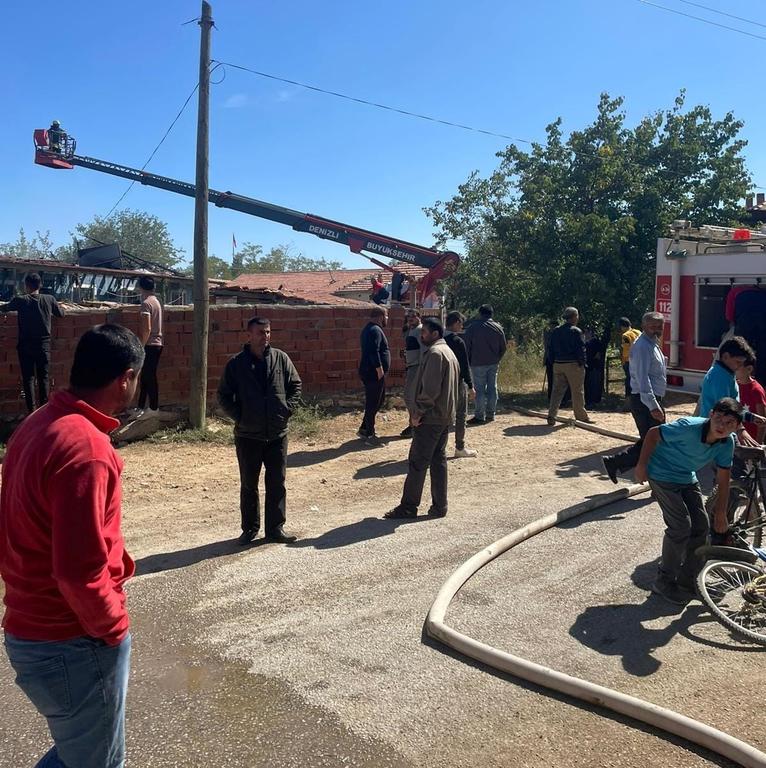Yangın, Çivril ilçesine bağlı Kıralan Mahallesi’nde meydana geldi. Edinilen bilgiye göre; İdris Yılmaz’a ait evden henüz belirlenemeyen bir nedenle yangın çıktı. Çıkan yangını kendi imkanlarıyla söndürmekte başarısız kalan Yılmaz, 112 Acil Çağrı Merkezi’nden yardım istedi. İhbar üzerine olay yerine çok sayıda itfaiye ekibi sevk edildi. Ekipler, evden depoya da sıçrayan yangını kontrol altına almak için hızlıca çalışma başlattı. Ekiplerin yoğun çalışmasının ardından alevler, kontrol altına alındı.