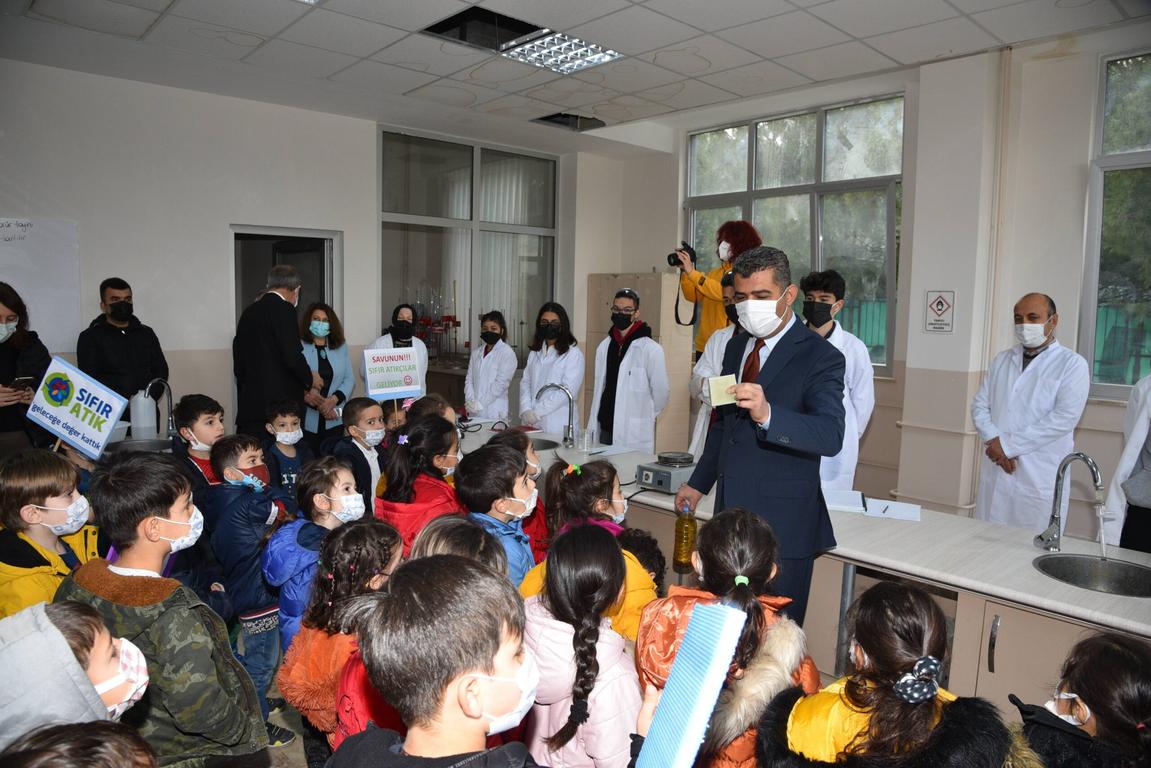 Programında devamında Gülay Kanak Sarıkaya MTAL Kimya Bölümü öğretmenleri ve öğrencileri, Hasan-Veli Üğür Anaokulu öğrencilerinin toplamış oldukları atık yağları gerekli kimyasal işlemlerden geçirerek sabuna dönüşüm aşamalarını İl Millî Eğitim Müdürü Süleyman Ekici, öğretmen ve öğrencilere göstererek anlattılar.