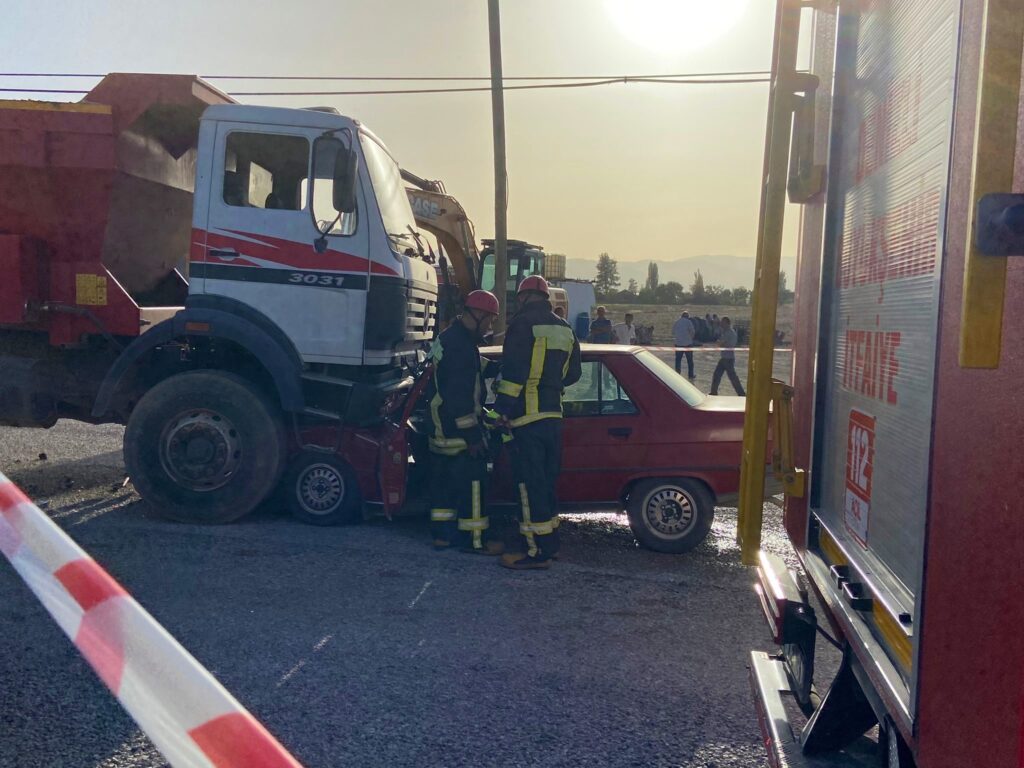 Denizli’nin Acıpayam ilçesinde bir otomobil ile hafriyat yüklü kamyonun kafa kafaya çarpışması sonucu meydana gelen kazada 1 kişi yaralandı. 5 gün önce aracını satılığa çıkaran yaralı sürücüyü, sıkıştığı yerden itfaiye ekipleri kurtardı.