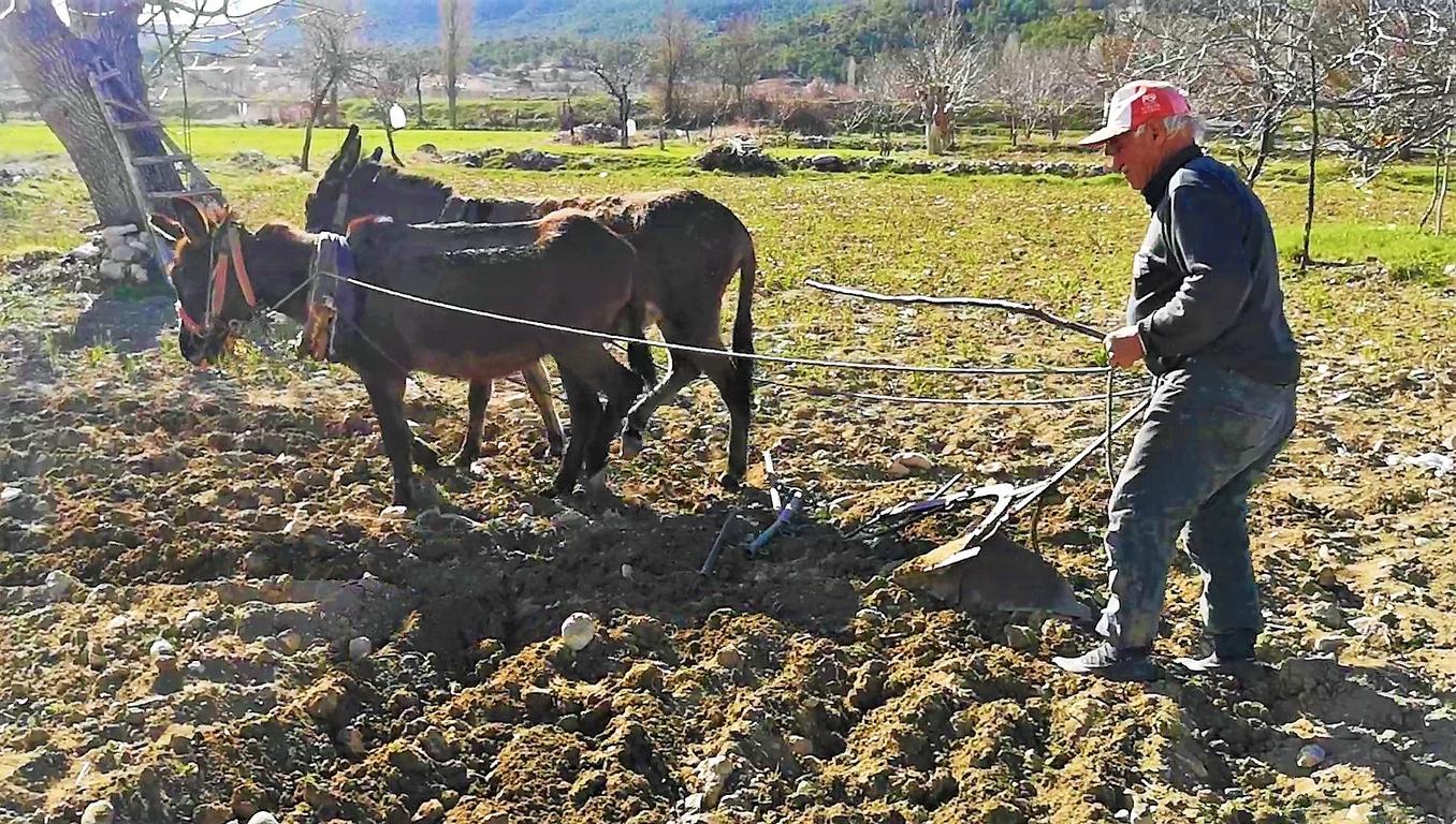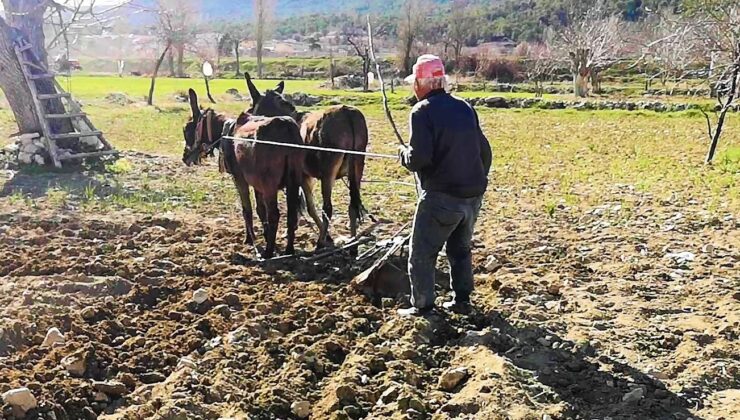 Çameli ilçesinde bulunan çiftçiler, kendilerini ait tarlalarda verimli hasılat almak için yoğun mesai harcıyorlar. Tarlalarda verim almak için iş aletleri ve traktörlerle tarlalarını süren çiftçilerin arasında en dikkat çekicisi ise atadan kalma yöntem oldu. İlçede yaşayan 68 yaşındaki Mehmet Sağdıç, binlerce yıllık geleneğinden vazgeçmeyerek 2 eşeğiyle tarlasını sürdü. Zorlu bir iş olduğunu belirten Sağdıç, hem kendisi hem de hayvanlarının yorulduğunu anlattı.
