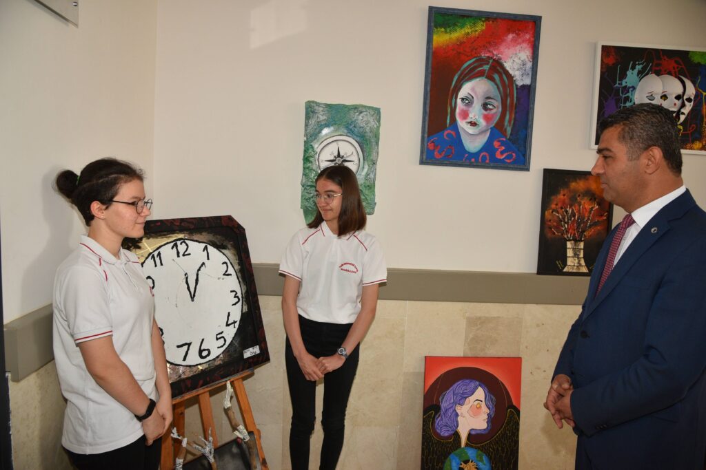 Dönüştürülebilir Sanat- Geri Dönüşüm Sergisi; okul müdürlüğünün koordinatörlüğünde, görsel sanatlar öğretmenlerinin rehberliğinde öğrencilerin hazırlamış olduğu ‘Dönüştürülebilir Sanat’ üretimlerinden ve yine biyoloji öğretmenlerinin rehberliğinde öğrencilerin hazırlamış olduğu ‘Geri Dönüşüm’ eserlerinden oluşuyor. Açılışın ardından Müdür Ekici, sergiyi gezerek tek tek tüm öğrencilerden eserler ve yapım süreçleri hakkında bilgiler aldı.