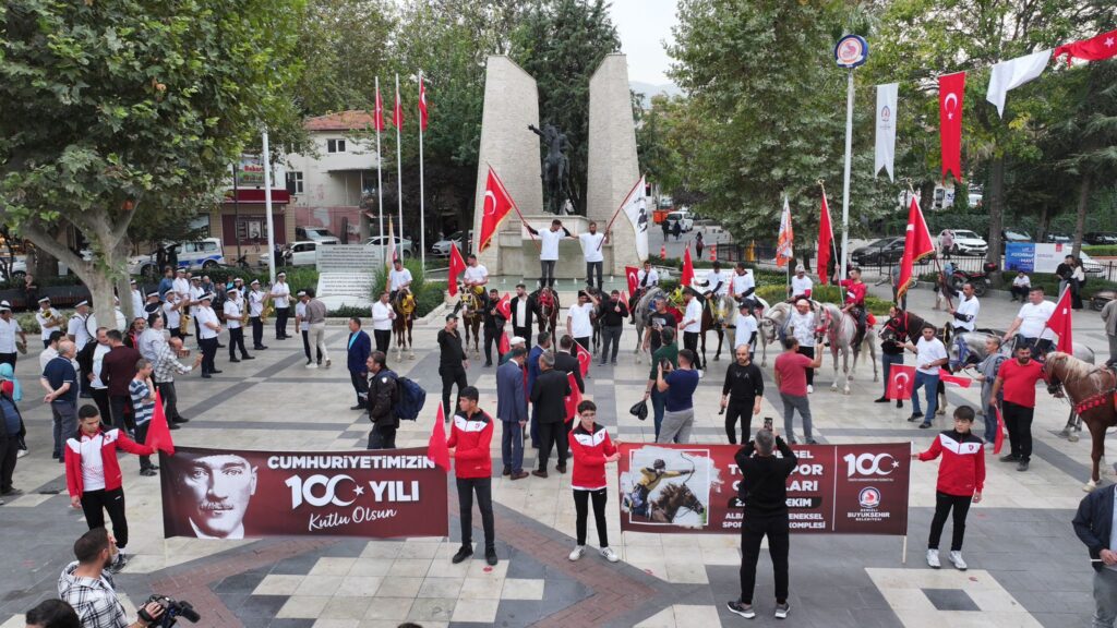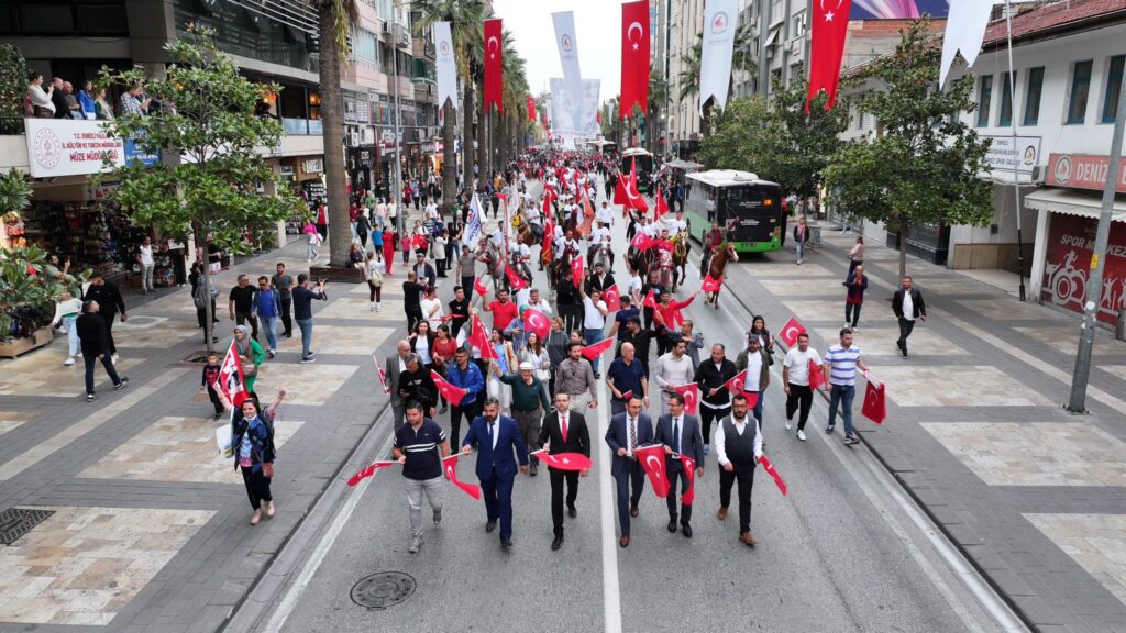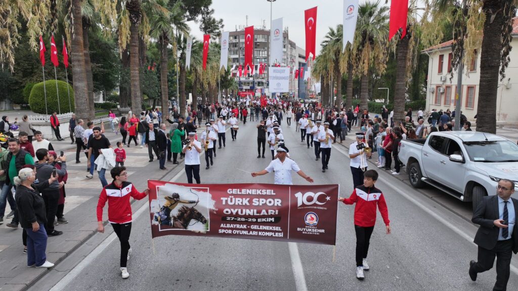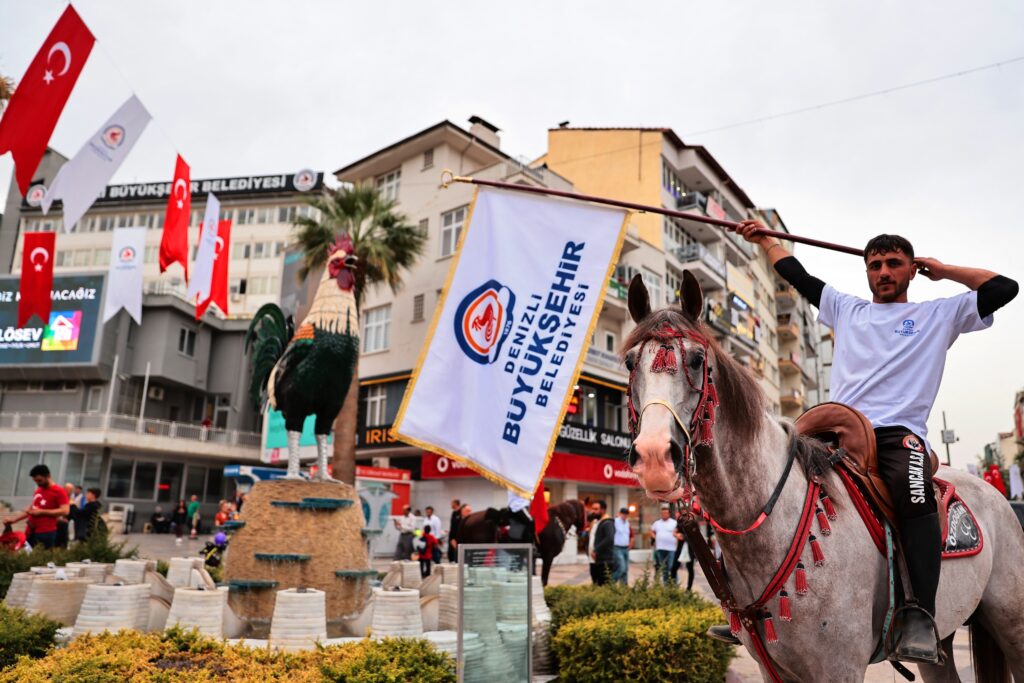 Türkiye Cumhuriyeti’nin 100. kuruluş yıldönümü kapsamında birbirinden özel etkinliklere imza atan Denizli Büyükşehir Belediyesinin 27-28-29 Ekim’de düzenleyeceği Geleneksel Türk Spor Oyunları heyecanı kortejle başladı. Denizli Büyükşehir Belediye Bandosu eşliğinde düzenlenen kortej Denizli Valiliği önünden başladı. Korteje, Denizli Büyükşehir Belediyesi Genel Sekreter Yardımcısı Ömer Faruk Özer, Geleneksel Atlı Spor Dalları Federasyonu Asbaşkanı Bahri Önal, daire başkanları, Denizli Büyükşehir Belediyespor sporcuları, çok sayıda vatandaş ve 3 gün sürecek müsabakalarda yer alacak atlı sporcular yer aldı. Süslenen atlar özellikle çocukların yoğun ilgisini çekerken, 7’den 70’e herkes atlı sporcuları beğeniyle izledi. Gazi Mustafa Kemal Bulvarı’nı takiben 15 Temmuz Delikliçınar Şehitler Meydanı’na kadar süren kortej renkli görüntülere sahne olurken, vatandaşlar eşine az rastlanan etkinliği cep telefonları ile kaydetti. HABER MERKEZİ