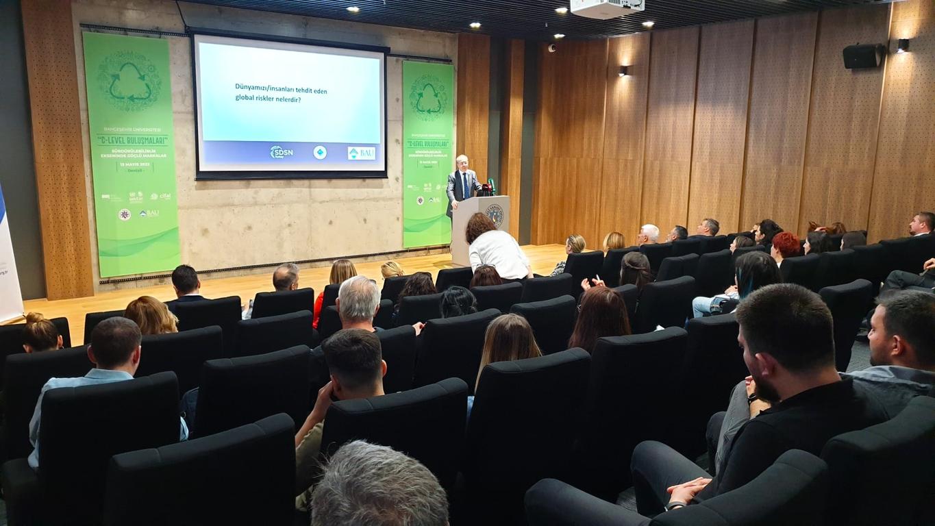 Programda Tamer Atabarut “Avrupa Yeşil Mutabakatı, Döngüsel Ekonomi ve Tekstil Sektörü”, Kemal Say “Sürdürülebilirlik 1.0: Riskler ve Fırsatları”, Besim Özek “Rekabet Üstünlüğü için Endüstriyel Simbiyozu”, Engin Güvenç “Değişim Yönetim ve Sürdürülebilirlik Entegrasyonunu” ile Prof. Dr. Elif Yolbulan Okan ise “İş Yaşamındaki Köklü Değişimler, Sürdürülebilirlik” konularındaki sunumlarını katılımcılarla paylaştı. Sürdürülebilir kalkınma perspektifinden pazarlama ve markalaşmanın önemine değinen Bahçeşehir Üniversitesi Rektörü Prof. Dr. Şirin Karadeniz, sürdürülebilirlik konusunda dersleri Türkçeleştirdiklerini belirtti. Prof. Dr. Şirin Karadeniz, “Bütün Türkiye genelinde 300’e yakın okulumuz var. 4 yaştan başlayan okul öncesi kurumlarımız var. Bunun dışında İngiltere, Amerika ve Avrupa da 5 farklı üniversitemiz bulunuyor. Toplamda 250 bin öğrencimiz var. Sürdürülebilirlik konusunda 5 yıl önce Harvard Üniversitesi’ne gittiğimizde orada bulunan hocamızla iş birliğine başladık. Buna başladığımızda global vatandaşlık ve sürdürebilirlik konusunda en küçük yaştan itibaren öğretmek adına hocamızla birlikte dersleri Türkçeleştirdik. Sadece bizim kurumumuza değil Türkiye’de bütün kurumlara açtık. O günden bugüne Birleşmiş Milletler’de kurduğumuz merkezle ve sistem çalışmalarıyla beraber aslında 4 yaştan itibaren derslerimizde bu konuları işliyoruz. Bu konuda ise gençlerimiz projelerini yapıyor, üniversite düzeyinde sektörle birlikte bilim insanlarıyla dersler veriyoruz” dedi.