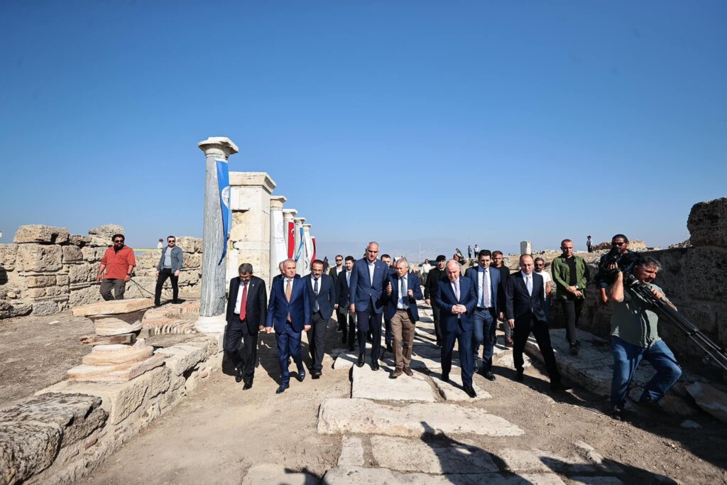 Kültür ve Turizm Bakanı Mehmet Nuri Ersoy Bey kazı çalışmalarının devam eden Laodikya Antik Kenti’nde incelemelerde bulundu. Bakan Mehmet Nuri Ersoy, Denizli Valisi Ömer Faruk Coşkun, Denizli Büyükşehir Belediye Başkanı Osman Zolan, Pamukkale Üniversitesi Rektörü Ahmet Kutlhan ve Pamukkale Belediye Başkanı Avni Örki eşlik etti. Bakan olduktan hemen sonra Laodikya’yı ziyaret ederek heykelin ilk tanıtımını yapan Ersoy, anıtsal çeşmenin heykeliyle birlikte tanıtımının yapılması dünya arkeolojisi ve turizm yönünden büyük önem taşıdığını da dile getirdi. Cumhuriyet’in kuruluşunun 100. yılına Laodikya Kazısı” olarak armağan edilen anıtsal çeşmenin ayağa kaldırılmasının bölgede turizmine önemli katkı sağlayacağı da belirtildi. İHA