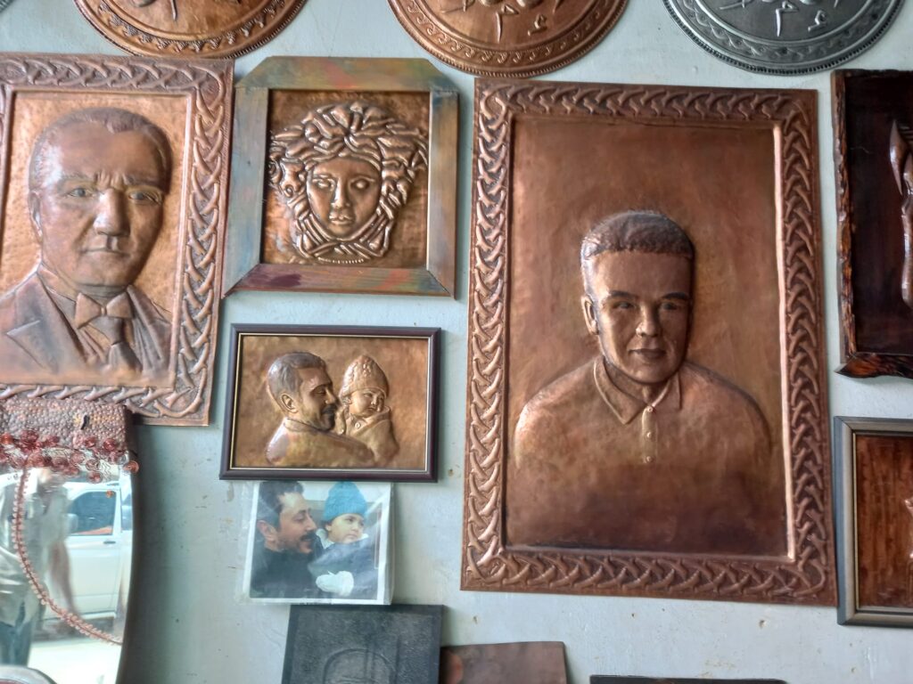 Bakır levhalar üzerine farklı simalar motiflendirilerek yapılan rölyefler Şefik Demirel’in atölyesinin duvarlarını süslüyor. Alıcısıyla buluşmayı bekleyen çalışmalar atölyede sergileniyor. Sanatsal boyuttan rölyefi ticari boyuta taşımak isteyenlerin durumları el verdikçe atölye açarak ayakta kalmaya çalıştıklarını belirten Demirel : “Bu meslek çoğu zaman karşınıza hobi olarak çıksa da benim gibi kendi atölyesini açanlarda var. Sanatsal boyuttan rölyefi ticari boyuta taşımak isteyenler durumları el verdikçe atölye açarak ayakta kalmaya çalışıyorlar. Ben burada emekli maaşım olduğu için belki bu iş yerini çevirebiliyorum. Ama sadece ekmeğini rölyeften kazananlar için bu bence soru işareti olabilir. Öte yandan bu meslek grubu bence resim var oldukça hayatımızdan silinmez. Devam ettirilme şekli hobi ya da tamamen ticaret bile olsa hep var olmaya devam eder. Unutulmaya yüz tutmuş meslekler arasında olsa da sevindiren tarafı öğrenmek isteyenler bu işe gönül verenler var.  Biz ailecek bu işe aşığız. Oğlumuzda burada yetişiyor ve o da işini severek yapıyor. Onun gibi gençlerin bu işi sürdüreceği umudu bende var. ”dedi.