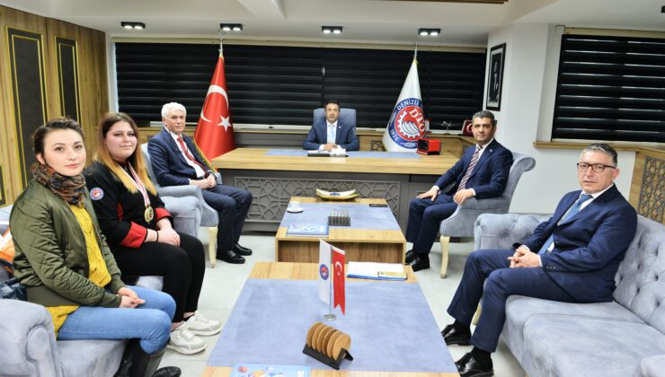 Ziyaretteki heyette Denizli Mesleki Eğitim Merkezi Müdürü Ali Özgan ile altın madalyalı aşçı Hatice Atmaca’nın çalıştığı turnuvada sponsoru da olan Çamlık Kahve Sokağı’nın sahibi Musa Taşan adına İşletme Müdürü Rüya Sert de yer aldı. Onlar da Atmaca’yı kutlayıp, desteklerinden dolayı Başkan Erdoğan’a teşekkür ettiler.