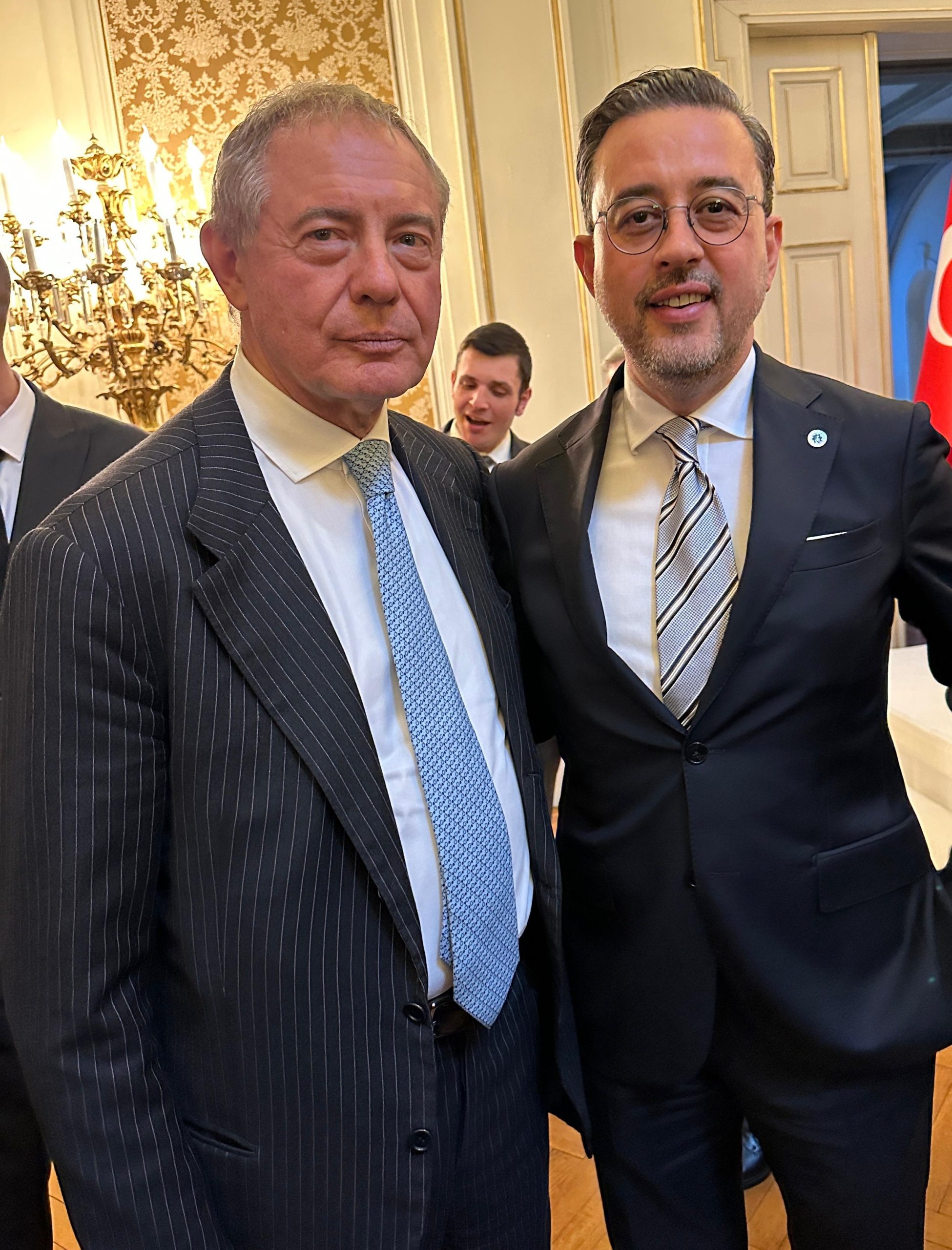Denizli Sanayi Odası (DSO) Yönetim Kurulu Başkanı Selim Kasapoğlu, İtalya’nın Türkiye Büyükelçisi Giorgio Marrapodi’nin davetiyle İstanbul’daki tarihi Venedik Sarayı’nda düzenlenen resepsiyona katıldı. Bu özel etkinlikte, İtalya İşletmeler ve Made In Italy Bakanı Adolfo Urso ve TC. Sanayi ve Teknoloji Bakanı Mehmet Fatih Kacır ile bir araya gelerek, önemli görüşmeler gerçekleştiren Başkan Kasapoğlu, İtalya ve Denizli arasındaki mevcut ticaret hacmini ve potansiyel iş birliklerini değerlendirdi, güçlü ticari ilişkilerin daha da derinleştirilmesi için çeşitli konularda fikir alışverişinde bulundu.