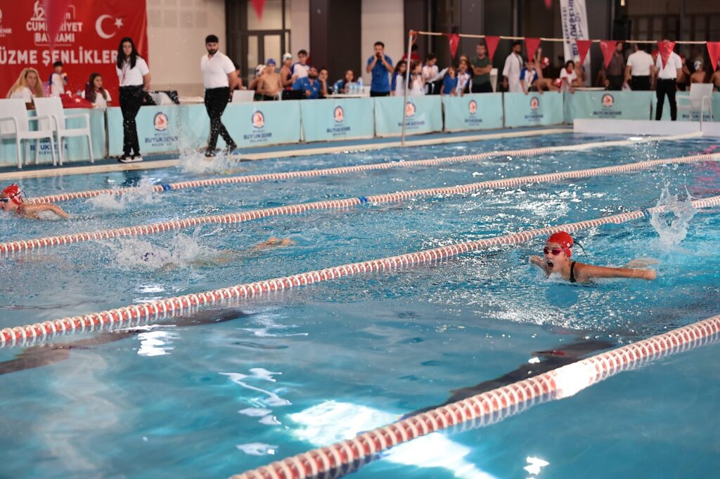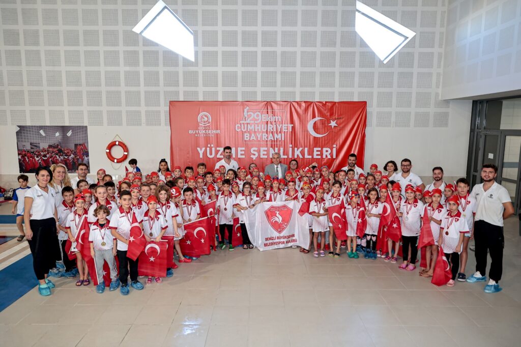 Denizli’de Cumhuriyet’in kuruluşunun 99’ncu yıldönümü kutlamaları Denizli Büyükşehir Belediyesi 29 Ekim Cumhuriyet Bayramı Yüzme Şenlikleri ile başladı. Büyükşehir Belediyesinin düzenlediği yarışmalara Denizli’de faaliyet gösteren Denizli Büyükşehir Belediyespor, Denizli Yüzme İhtisas Spor Kulübü, Pamukkale Üniversitesi Mensupları Spor Kulübü, Pamukkale Su Sporları Kulübü ve Denizli Gençlik Hizmetleri ve Spor Kulübü’nden 8-9-10 yaş grubu 180 minik sporcu katıldı. Denizli Büyükşehir Belediyesi Kayıhan Kapalı Yüzme Havuzu ve Spor Kompleksi’nde gerçekleşen müsabakaları Büyükşehir Belediye Başkanı Osman Zolan, Genel Sekreter Yardımcısı Ömer Faruk Özer, Gençlik ve Spor İl Müdürü Ömer İlman, sporcular, aileleri ve çok sayıda vatandaş izledi. Saygı duruşunda bulunup, İstiklal Marşı’nın okunmasıyla başlayan programda sporcuların geçit töreni renkli görüntülere sahne oldu. Gençlik ve Spor İl Müdürü Ömer İlman, bu özel turnuvaya desteklerinden dolayı Başkan Zolan’a teşekkür etti.