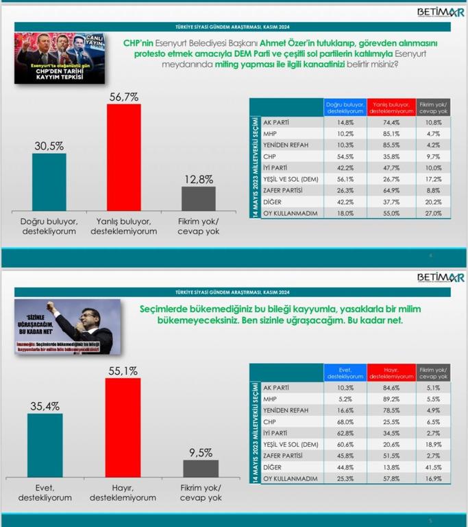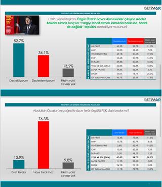 destekleyenlerin oranı ise %43,4’de kaldı. CHP, İYİ Parti, DEM ve Zafer