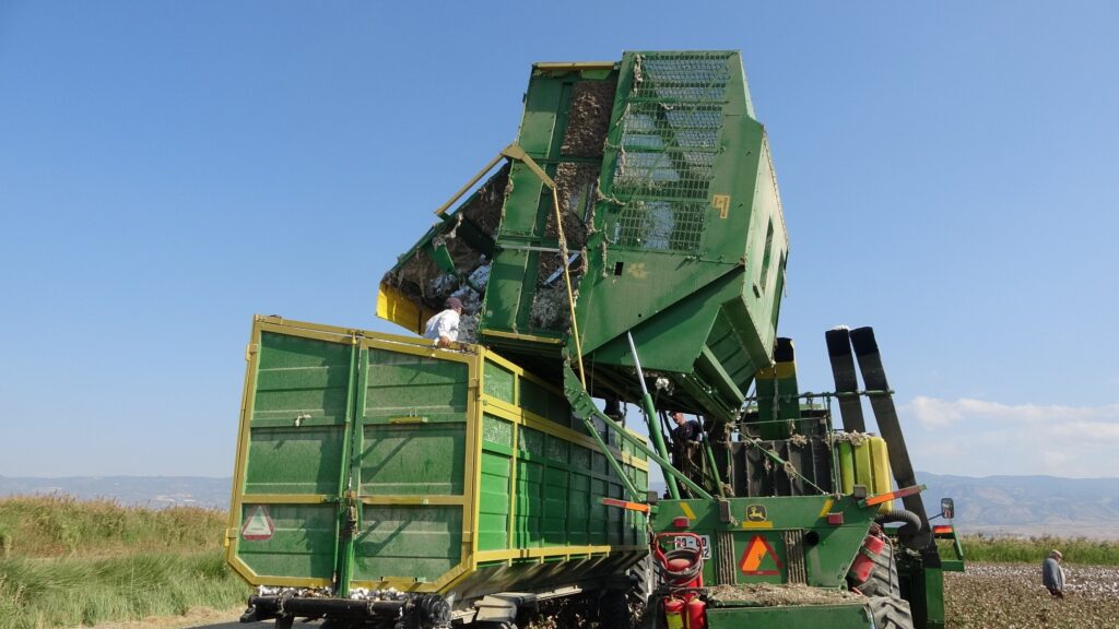 Türkiye’de pamuk üretiminin önemli bir kısmını oluşturan Denizli’de, hasat heyecanı sürüyor. Beyaz altın olarak nitelendirilen pamuğun hasadı hem alıcıları hem de üreticileri memnun etti. Kentin birçok bölgesinde geçen yıla oranla artan pamukta, hasat için makineler hummalı çalışmalarına devam ediyor. Pamuklar hasat edilmesinin ardından işlenmek için çırçır fabrikalarına gönderiliyor.