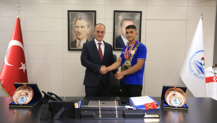 Pamukkale Belediyespor adına şampiyonada güreşen Beytullah Sarı 85 kg kategorisinde rakiplerini geride bırakarak altın madalyanın sahibi oldu. Bu dereceyle birlikte Beytullah Sarı, yağlı güreş ve minder güreşlerinde toplam 15. altın madalyasını kazanmış oldu. Şampiyon güreşçi bu sezon 2 gümüş ve 4 bronz madalyası da mevcut. Pamukkale Belediyespor Onursal Başkanı ve Pamukkale Belediye Başkanı Avni Örki, “Pamukkale’nin adının er meydanlarında da duyulması amacıyla güreş branşımızı aktif hale getirdik. Güreşçilerimiz de bu yıl adımızın sıkça duyurulmasını sağladılar. 14 yaşındaki sporcumuz Beytullah Sarı, bu sezon Tarihi Kırkpınar Yağlı Güreşleri, Kurtdereli Mehmet Pehlivan Er Meydanında kazandığı altın madalyalar da dâhil olmak üzere 15 altın madalyanın sahibi oldu. Başarılarıyla hem Pamukkale’mizi hem de Denizli’mizi gururlandıran sporcumuzun başarılarının devamını diliyorum” dedi. HABER MERKEZİ