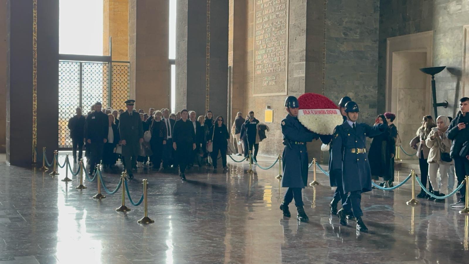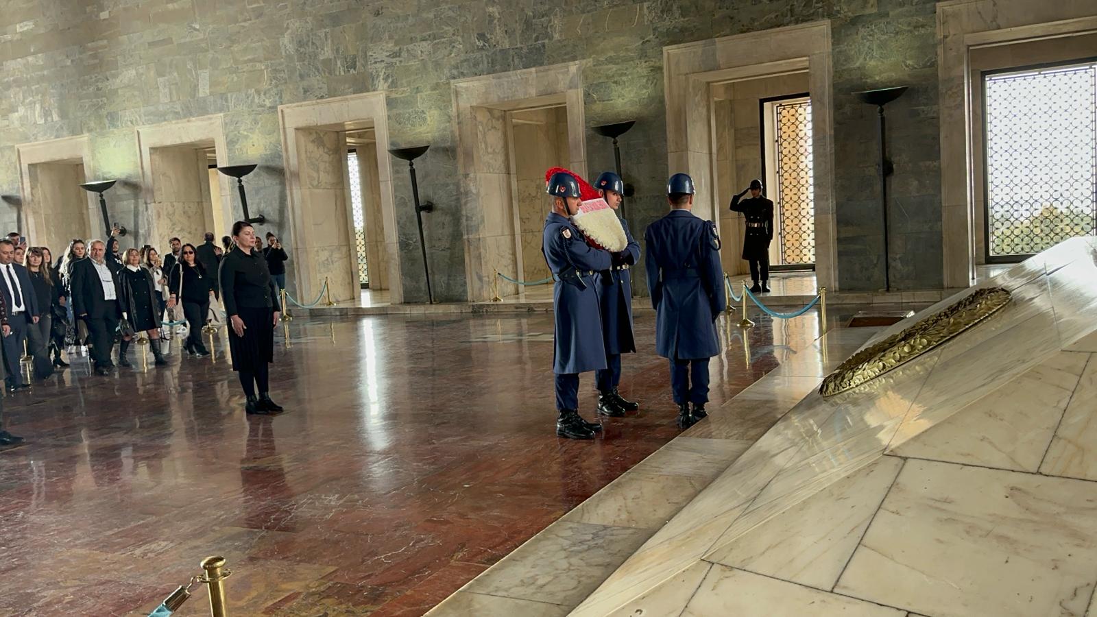 Sendika Başkanı Dr. Derya Mengücük başkanlığındaki heyet aslanlı yoldan geçerek mozoleye geldi. Dr. Mengücük kırmızı beyaz karanfillerle yapılan çelengi bıraktı. Sendika üyeleri Ata’nın huzurunda saygı duruşunda bulundu. Heyet daha sonra Misak-ı Milli kulesine geçti. Başkan Dr. Mengücük Anıtkabir özel defterini imzaladı.
