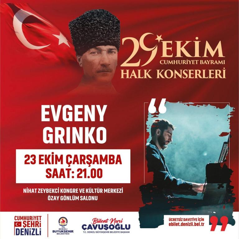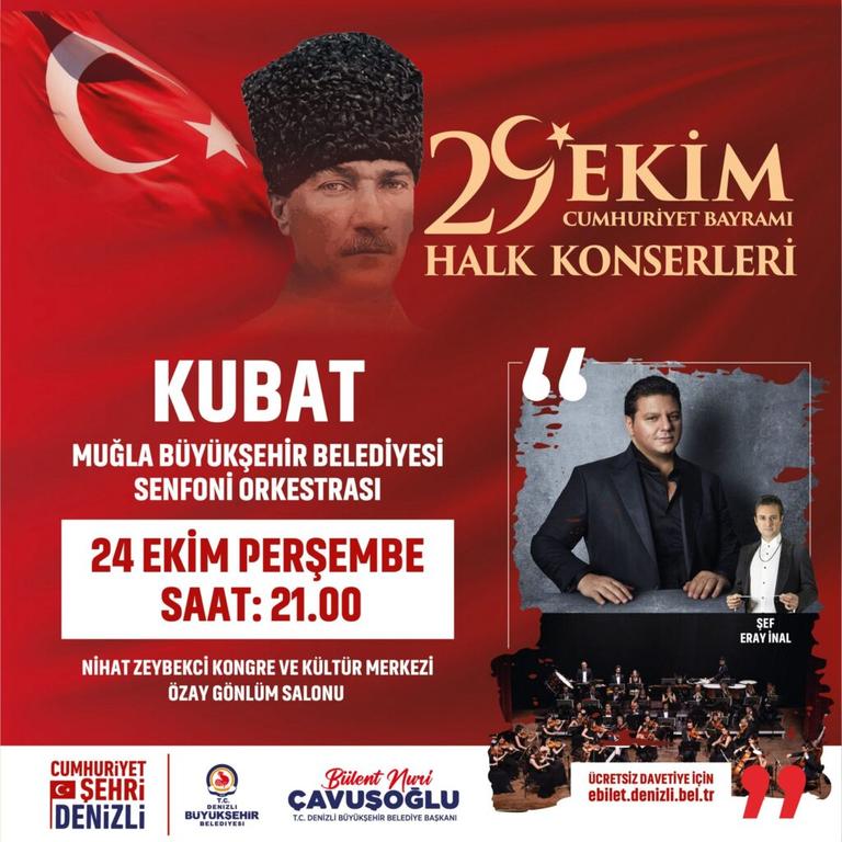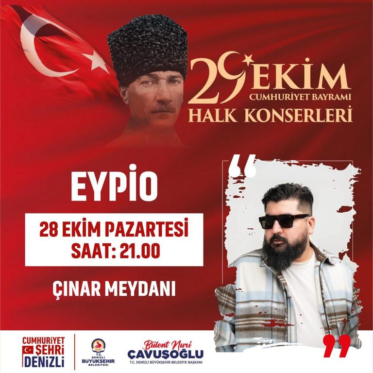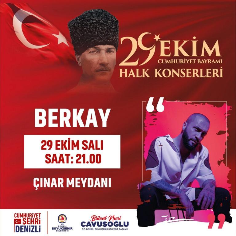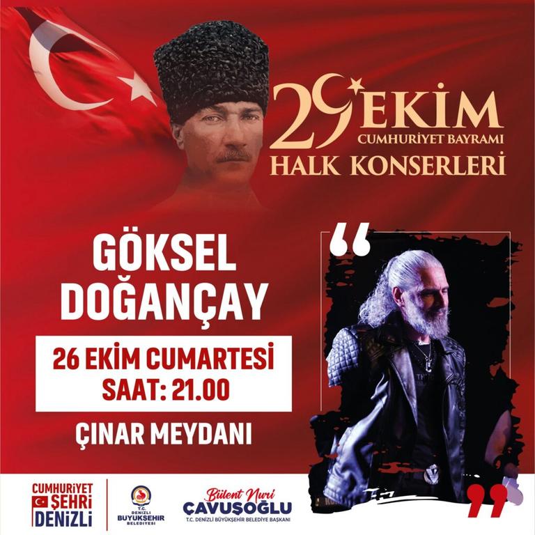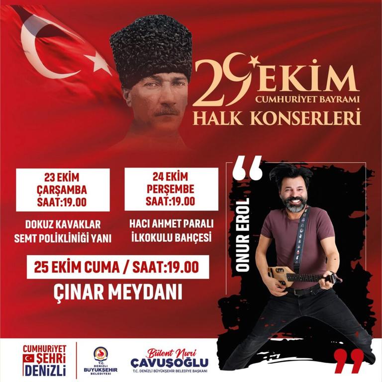 Denizli Büyükşehir Belediyesi, Türkiye Cumhuriyeti’nin 101. kuruluş yıldönümüne özel 9 gün sürecek 34 farklı program hazırladı. Konserlerden spor turnuvalarına, sergilerden film gösterimlerine Cumhuriyet coşkusunun dolu dolu yaşanması için düzenlenen kutlamalara Berkay, Eypio, Özgür Can Çoban, Kubat ve Evgeny Grinko konserleri damga vuracak.