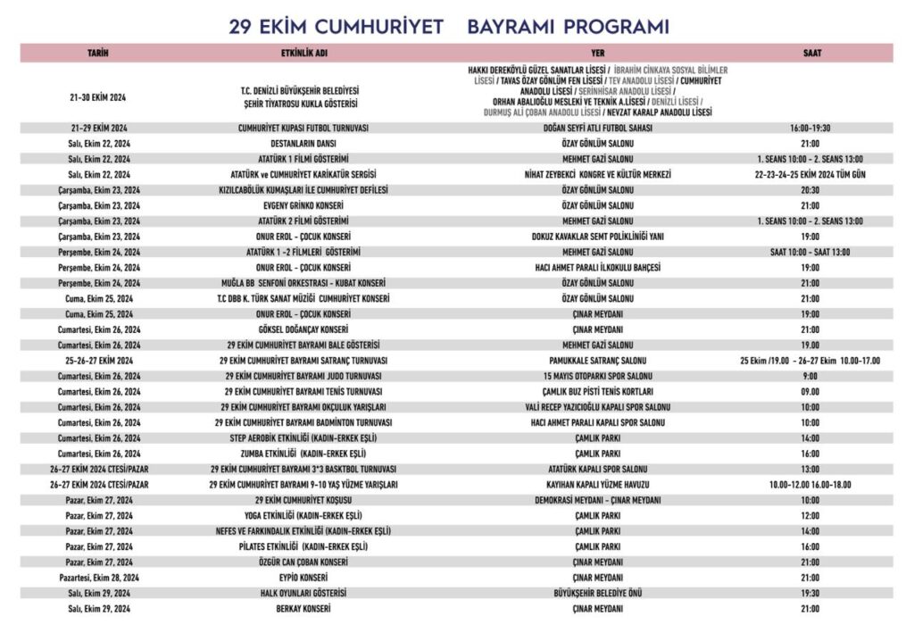 • Büyükşehir’in Cumhuriyet Bayramı programı belli oldu / Denizli’de 29 Ekim kutlamaları 9 gün sürecek