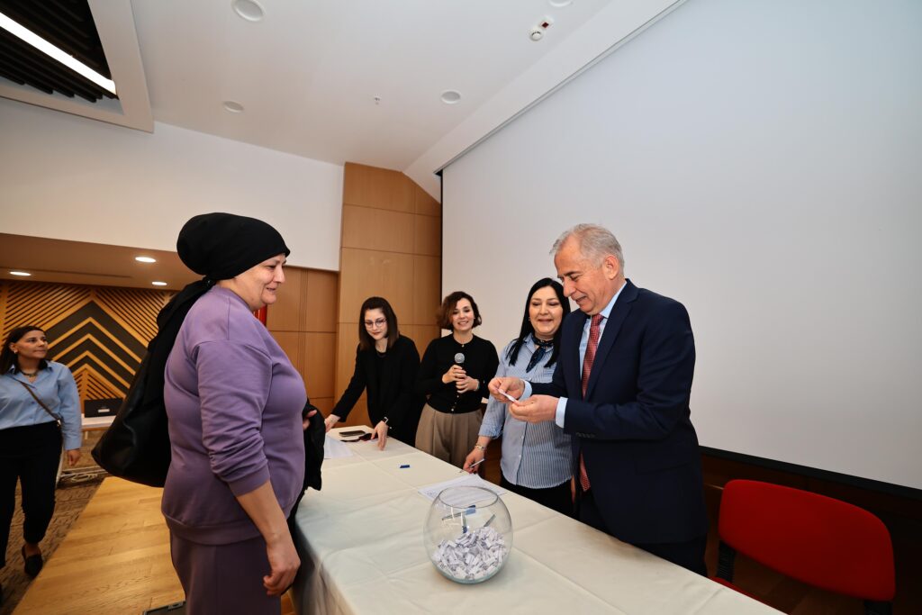 Büyükşehirle Üreten Kadınlar Festivali’nin dördüncüsünün başarılı bir şekilde geçeceğine inandığını kaydeden Başkan Zolan, “Ürettiğiniz ürünler inşallah değerinde satılır. Bu işin sahibi sizsiniz, inşallah bereketli ve güzel olsun. Kent Konseyimiz, Kadın Meclisimiz de sizlerin yanında olmaya devam edecek” dedi. Kura sonucu stantların yerlerinin belirleneceğini Başkan Zolan, “Festivalimiz inşallah başarılı ve güzel geçsin. Denizlimiz Üreten Kadınlar Festivalimizle, sanatımızla, kültürümüzle, birçok etkinliğimiz ile yoluna devam etsin. İnşallah emeğinizin karşılığını alırsınız. Duamız, temennimiz bu. Hepinize başarılar ve hayırlı işler diliyorum” ifadelerini kullandı. Konuşmanın ardından ilk kura çekimini Başkan Zolan yaptı.