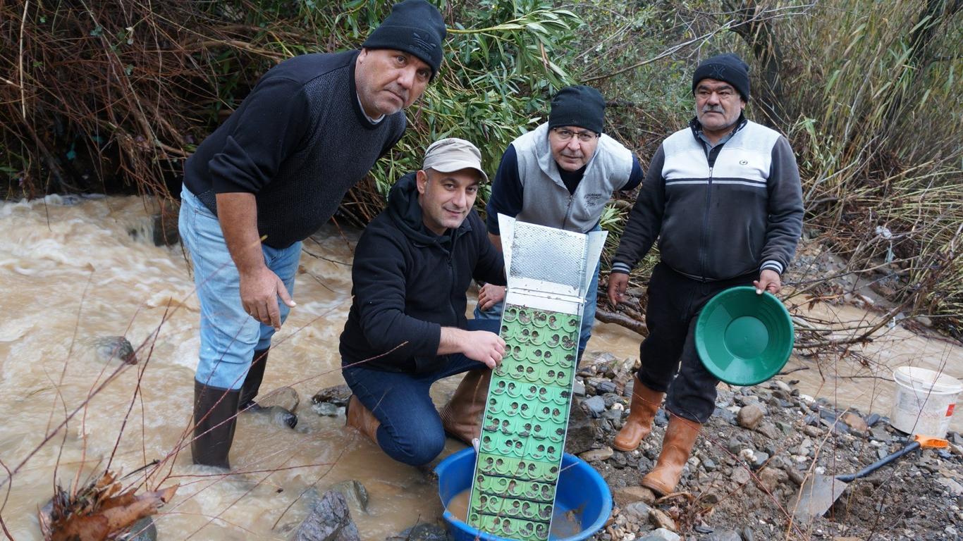 Geçen yıl yaşanan kuraklık nedeniyle susuz kalan dereler, bu yıl yaşanan son yılların en çetin kışıyla birlikte yeniden suya kavuştu. Yağışsız geçen sonbaharın ardından başlayan yağmur ve kar yağışlarıyla birlikte sel sularının taşıdığı çamurun içinde altın arayan kırıntı madencilerinin de işleri hızlandı. Soğuk havaya rağmen sel derelerinin içinde suya savak kuran altın arayıcıları, savağa takılan çamur parçacıkları içindeki altın parçacıklarını ayrıştırıyor. Haftada 7-8 gram altın bulan kırıntı madenciler, buldukları altın parçacıklarını İzmir’de erittiriyor. Ayar derecesi ölçülen altın tamirat yapan kuyumculara satılıyor. Sel sularının çamur taşıdığı derelerde soğuk havaya rağmen altın arayan İbrahim Irgatçı, “Yaklaşık 3 yıldır bu işi yapıyorum. Bu bizim için bir tutku haline geldi. Geçen yıl çok büyük kuraklık oldu. O yüzden bu işe ara vermek zorunda kaldık. Yağmurun ardından derelere su gelmesiyle beraber, altın madeninin hareketliliği başladı. Biz hobimize geri döndük ve bugün birkaç parça altın yakalamayı başardık. Haftalık yaklaşık 7- 8 gram altına bulabiliyoruz. Emeğimiz boşa çıkmıyor ve bizim bu işi yapmamız için çok iyi bir neden oluşturuyor. Topladığımız altınları ay sonu İzmir Sarraflar Çarşısı’ndaki ayar evlerinde eritmesini sağladıktan sonra ayarını belirleyip hurda fiyatından satıyoruz. Çalıştığımız bölgeye göre bazen 22, bazen de 21 ayar denk geliyor. Diğer malzemelerde karışırsa ayarı düşüyor veya saflık derecesi artıp 23 ayara kadar çıkabiliyor. Bugüne kadar en yüksek 23 ayardan altın sattık, 24’ü daha hiç görmedik. Ayar değeri üzerinden emeğimizin karşılığını alıyoruz” dedi.