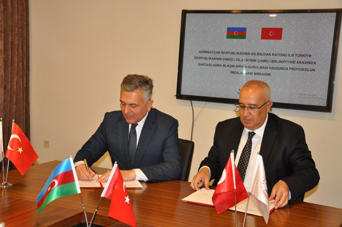 Bilesuvar İli İcra Hakimiyeti tarafından Çameli Belediyesi ile Bilesuvar bölgesi arasında dostane ilişkilerin kurulması amacıyla “Kardeşlik Şehirleri” protokolü imzalandı. Törene Çameli Kaymakamı Kerem Yenigün, Çameli Belediye Başkanı Cengiz Arslan ve Çameli Belediye Meclis Üyesi İlhan Kandemir takıldı. Kardeşlik protokolünü Bilesuvar İli İcra Hakimiyeti Başkanı Faiq Gurbetov ile Çameli Belediye Başkanı Cengiz Arslan imzaladı.Törende konuşan Bilesuvar İli İcra Hakimiyeti Başkanı Faiq Gurbetow, aynı soy, dil, din, kültür ve birçok karşılıklı bağa sahip olmanın Azerbaycan ile Türkiye arasındaki kuvvetli bir bağ oluşturduğunu söyledi. İlişkilerin sürekli gelişmesi gerektiğine değinen Gurbetow, “Milli liderimiz Heyder Aliyev’in ‘Tek millet, iki devlet’ olarak nitelendirdiği Azerbaycan – Türkiye devletleri arasındaki ilişkiler, her iki ülkenin liderliğinde yürütülen politika neticesinde istikrarlı bir şekilde gelişmektedir. Tüm dünyaya örnek olan Azerbaycan – Türkiye ilişkilerinin geliştirilmesi ve sürekli güçlenmesinden istifade ederek, bölgelerimizin her alanda dostluk ve ortaklık ilişkilerinden karşılıklı olarak faydalanması gerekiyor. Bilesuvar ili ile Çameli ilçemiz arasında bugün imzalanan bu protokol, işbirliğimizin üst düzeyde gelişmesine ve detaylı ilişkilerin güçlenmesine katkı sağlayacaktır” dedi.