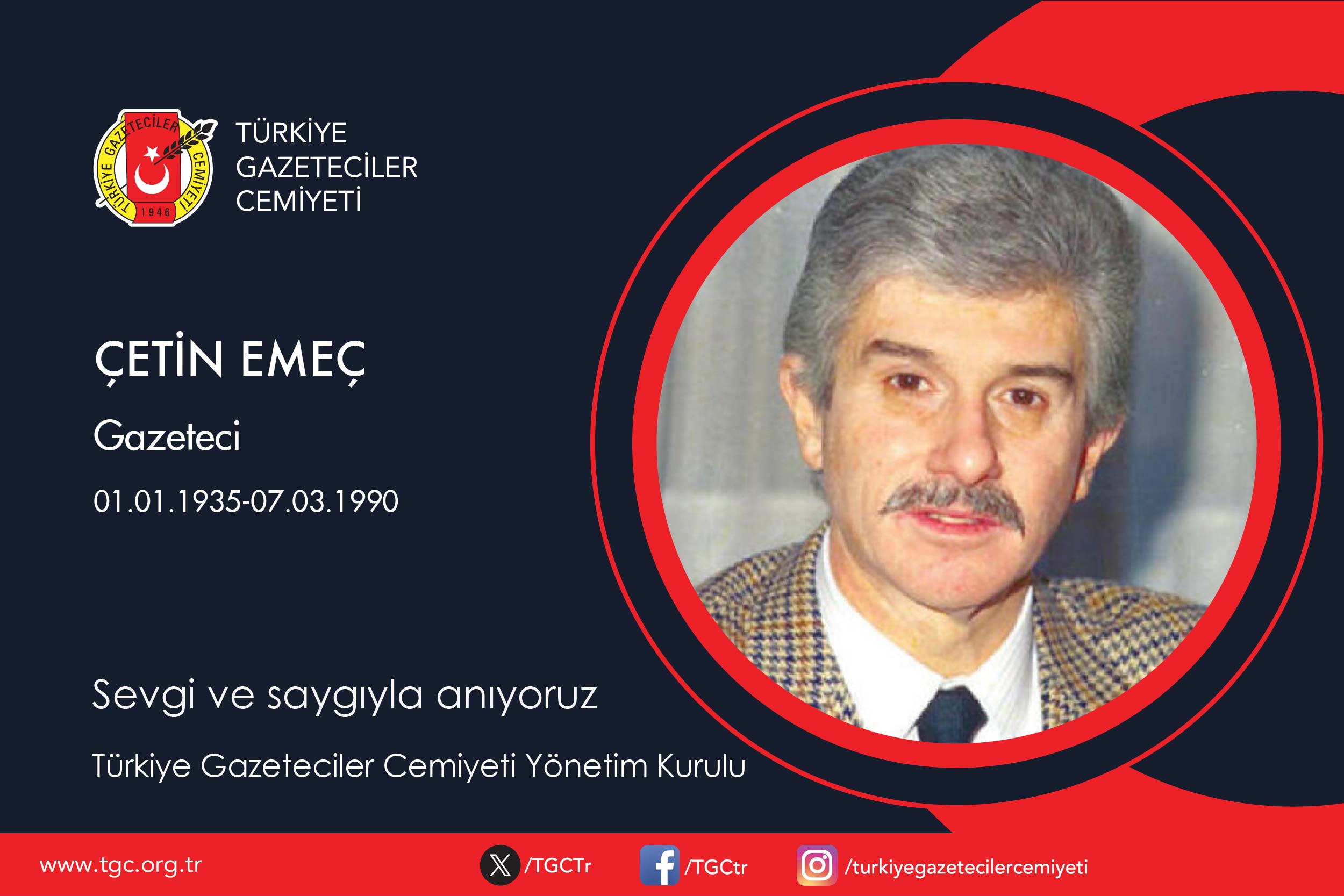 Türkiye Gazeteciler Cemiyeti Yönetim Kurulu Çetin Emeç’in ölümünün 35. yılında anma mesajı yayınladı. TGC Yönetim Kurulu’nun mesajında şu görüşler yer aldı: