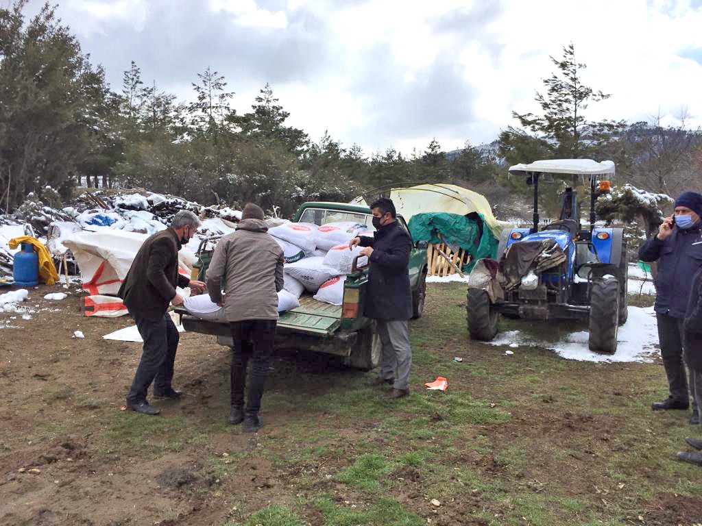 Denizli’nin Acıpayam ilçesinde geçtiğimiz haftalarda yoğun kar yağışını sebebiyle ağılları yıkılan ve hayvanları telef olan besi yetiştiricilerine yönelik ücretsiz yem dağıtımı yapıldı. Ağılları yıkılan ve hayvanları ölen çiftçilerin hasar tespiti yapılmasının ardından Acıpayam Kaymakamı Mustafa Gürbüz, Denizli Tarım ve Orman İl Müdürü Yılmaz Erkaya, Damızlık Koyun Keçi Birliği Başkanı Kadir Özdemir‘in destekleriyle görevli personeller tarafından yemler dağıtıldı.