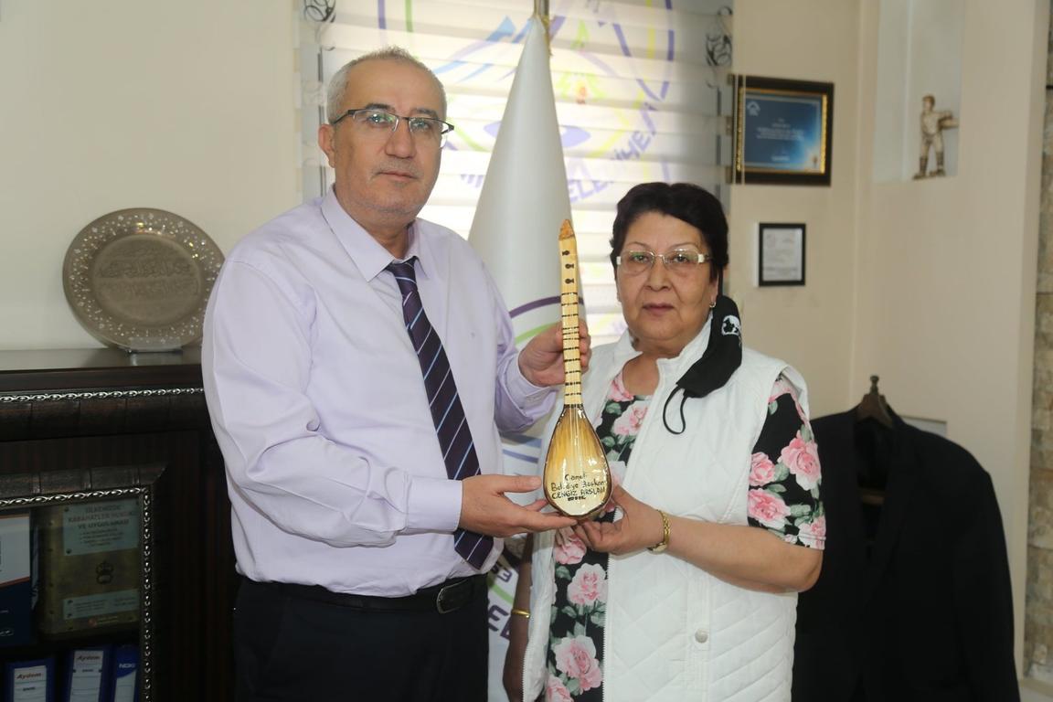 Tamamen el emeği olarak 5 günde yapılan 3 telli curayı Başkan Arslan’a hediye eden çini kursu eğitmeni Nezahat Dikilitaş, “Çini sanatı bin yıllık atalarımızdan bize miras kalan bir sanattır. Bu sanatı gelecek nesillere aktarmak adına çalışmalar yapıyoruz. Cini malzemelerinden birçok eser yaptım, seramikten yapılan enstrümanlar oldu. Bunun dışında Türkiye’de kullanılan döblek dediğimiz çömlek müzik enstrümanları çok yaygındır. Ama bunun dışında 3 telli saz olarak Denizli’de bir ilk diyebiliriz” dedi.