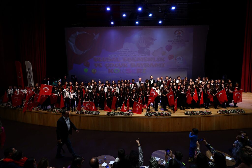Denizli Büyükşehir Belediyesi, 23 Nisan Ulusal Egemenlik ve Çocuk Bayramı kutlamalarına düzenlediği birbirinden güzel etkinliklerle başladı. Bu kapsamda Denizli Büyükşehir Belediye Konservatuarı Çocuk Korosu ve Orkestrası, muhteşem performansı ile büyük beğeni topladı. Büyükşehir Belediyesi Nihat Zeybekci Kongre ve Kültür Merkezi’nde düzenlenen programa, Büyükşehir Belediyesi Meclis Başkanvekili Ali Marım, Kültür ve Sosyal İşler Dairesi Başkanı Hüdaverdi Otaklı, davetliler ve çok sayıda vatandaş katıldı. Koro Şefi Görkem Karagün eşliğinde gerçekleşen konserde sahne alan çocuklar söyledikleri birbirinden güzel şarkı ve türkülerle büyüklere adeta taş çıkarttı. Denizli Büyükşehir Belediye Konservatuarı Çocuk Korosu ve Orkestrası’nın muhteşem performansına tanıklık eden davetliler de hep birlikte şarkı ve marşlara eşlik ederek 23Nisan Ulusal Egemenlik ve Çocuk Bayramı coşkusunu hep birlikte yaşadı.