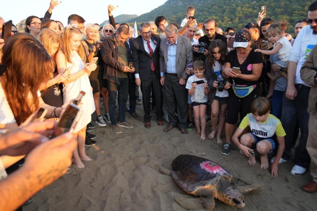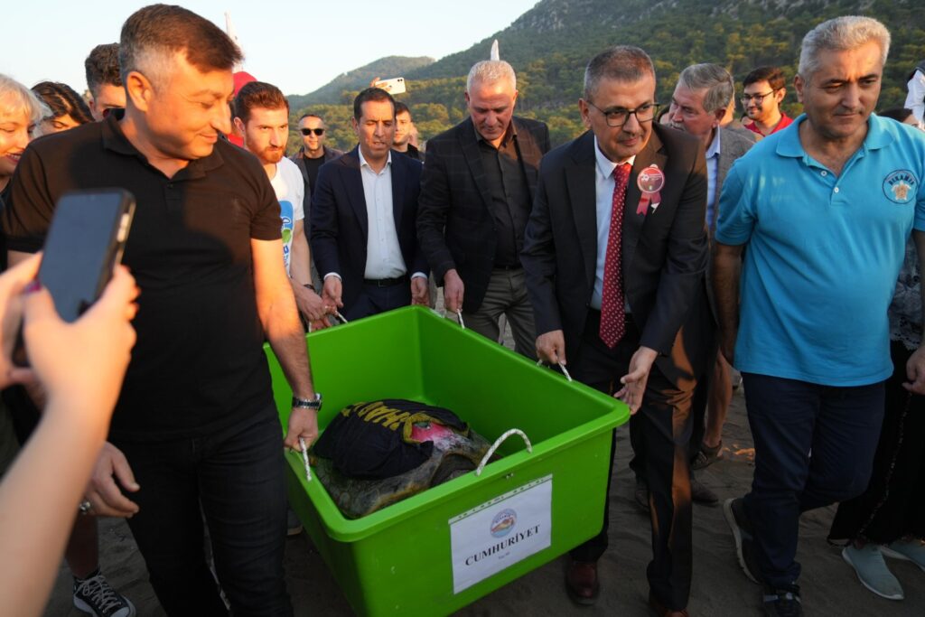 Etkinlikte ‘Cumhuriyet’, ‘Sonsuz’ ve ‘Özgürlük’ isimleri verilen deniz kaplumbağaları ile 10 yavru kaplumbağa İztuzu Plajı’ndan denize bırakıldı.