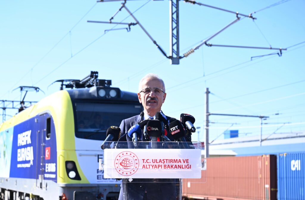 2023 yılında Çin-Avrupa arasında gerçekleşen 9 bin 340 tren seferi ve Avrupa – Çin arasında gerçekleşen 8 bin 180 tren seferi ile 1.9 milyon TEU yük taşındığını söyleyen Uraloğlu, “Bu sayı her geçen yıl artmaya devam ediyor ve bu noktada Asya ve Avrupa arasında köprü görevi gören ülkemizin coğrafi konumunun sağladığı fırsatların ekonomik ve ticari avantajlara dönüşebilmesi için demiryollarında yeni bir çağ başlattık.” diye konuştu. Demiryolu taşımacılığından daha çok pay alabilmek için 30 Ekim 2017’de faaliyete başlayan Bakü – Tiflis – Kars Demiryolu Hattı’nın demiryolu taşımacılığına yeni bir yön verdiğini kaydeden Bakan Uraloğlu, “Çin-Türkiye arasında yaklaşık 8 bin 693 kilometrelik mesafe dikkate alındığında bu hat üzerinden konteynerler Çin’den Türkiye’ye 12 günde, Marmaray Tüp Geçiti’ni de kullanarak Çin’den Avrupa’ya ise 18 günde ulaşıyor. Çin-Türkiye-Avrupa arasında ilk tren 2019 yılı Ekim ayında Çin’den yola çıkıp, Çekya’nın Prag şehrine 18 günde ulaşmıştır.” şeklinde konuştu.