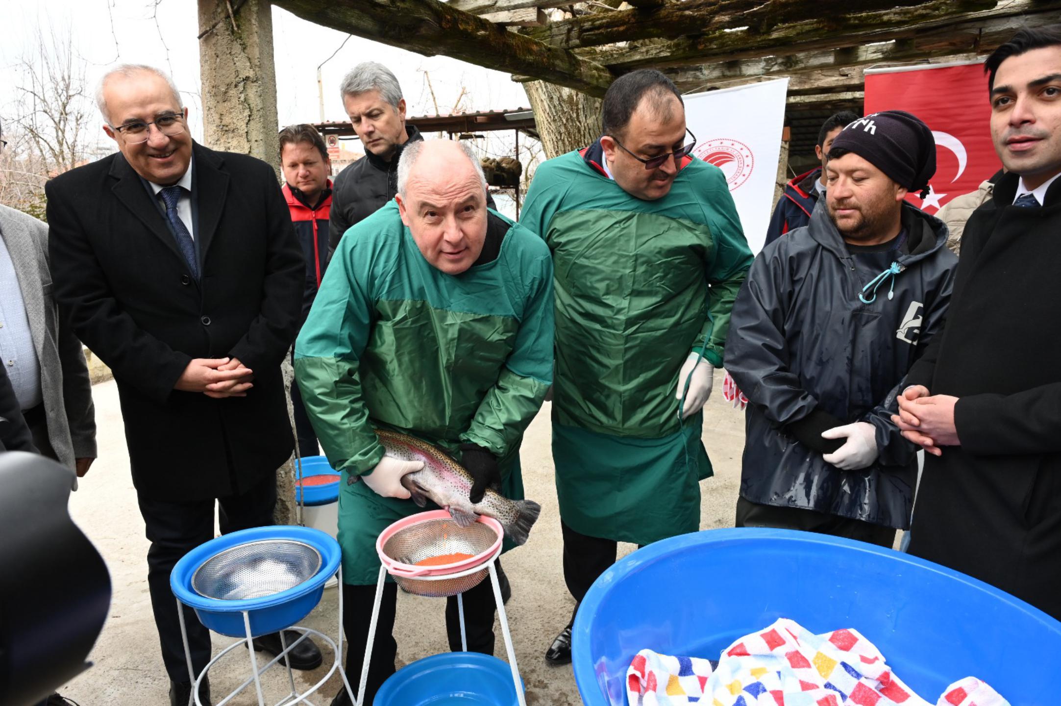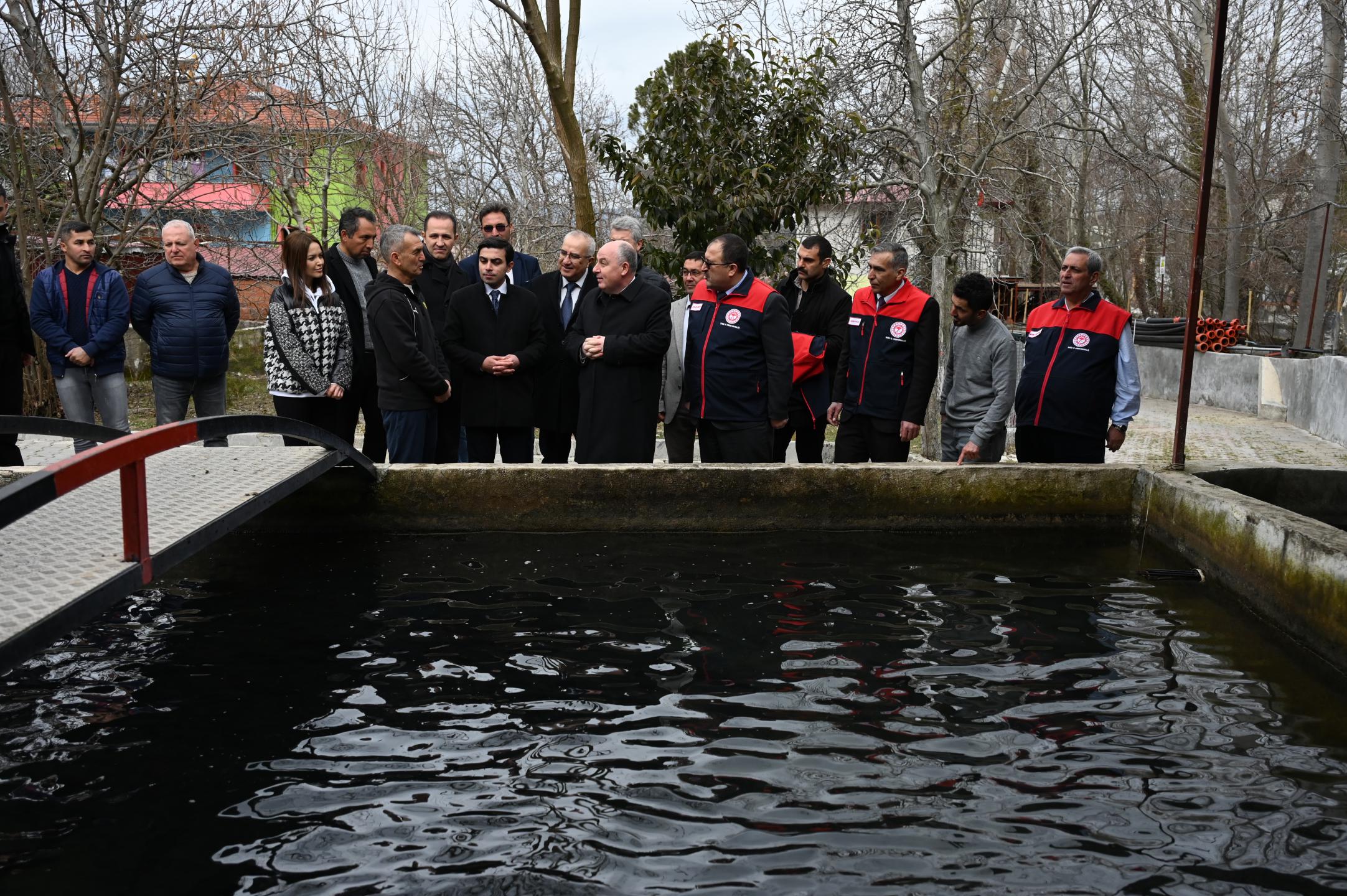 Ziyaretin ilk durağı Taşçılar Mahallesi oldu. Burada, Tarım ve Orman Bakanlığı TKDK destekleri kapsamında desteklenen Mustafa KARA’ya ait su ürünleri tesislerinde incelemelerde bulunularak, alabalık yumurta sağım işlemi yerinde gözlemlendi. Heyet, alabalık üretimi konusunda yapılan çalışmaları izleyerek, üretim süreçlerini ve sektörün gelişimine yönelik yapılabilecek yatırımları değerlendirdi.