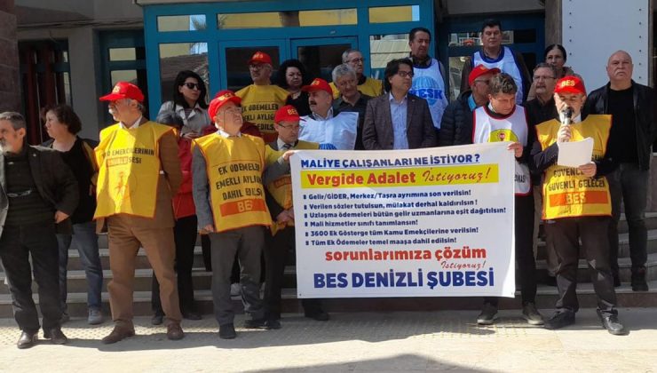 Kamu Emekçileri Sendikası Konfederasyonu’na bağlı Büro Emekçileri Sendikası Denizli Şubesi Vergi Dairesi önünde büro emekçilerinin sorunlarına değinerek mülakatın kaldırılması, kamuda yaşanan ek gösterge adaletsizliği, vergi dilimlerinin yarattığı adaletsizlik ve 3600 ek göstergenin kaldırılması taleplerini dile getirdiler.