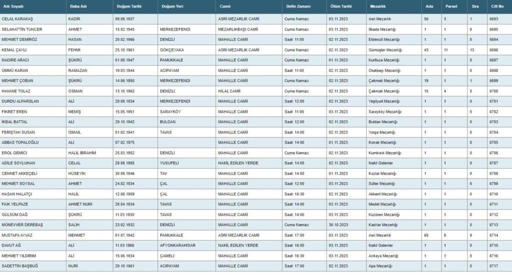 DENİZLİ’DE VEFAT EDENLER – 03.11.2023