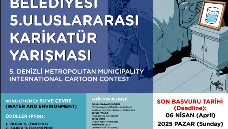 Denizli Büyükşehir Belediyesi, bu yıl beşincisini düzenleyeceği Uluslararası Karikatür Yarışması için başvuruları kabul etmeye başladı. Yarışmanın bu yılki teması “Su ve Çevre” olarak belirlenirken, tüm amatör ve profesyonel karikatüristler yarışmaya katılabilecek.