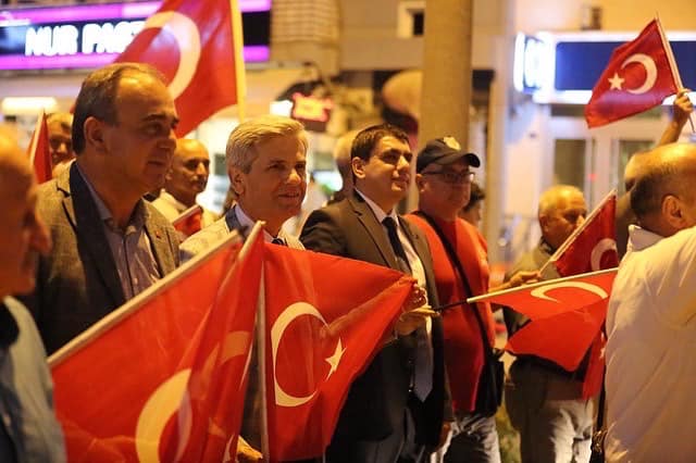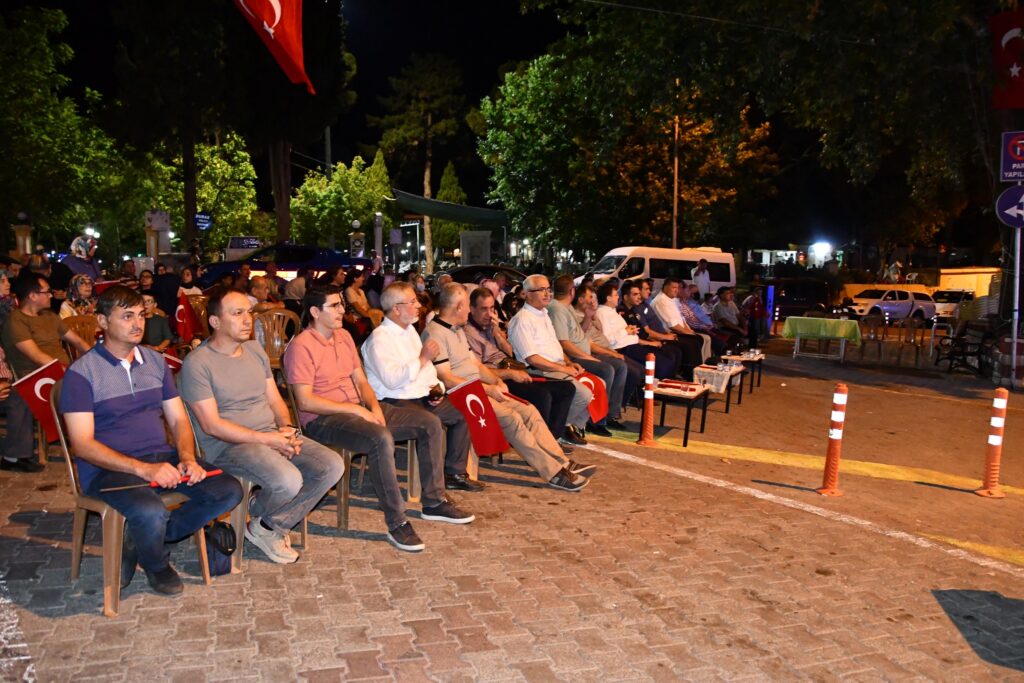 15 Temmuz Demokrasi ve Milli Birlik Günü’nde vatandaşlar bir araya gelerek dualar etti ve ellerinde bayraklarla vatan nöbetine devam ettiklerini ifade ettiler. Kamu Kurum ve Kuruluşları ve siyasi parti yetkililerinin katılımıyla gerçekleştirilen gece de “Malazgirt’ten Çanakkale’ye, Dumlupınar’dan 15 Temmuz’a, vatan ve bayrak aşkıyla bugün de nöbetteyiz” mesajı verildi. Vatandaşların yoğun katılımı ve minnet duygularıyla andığı o karanlık gecenin unutulmayacağı dile getirildi.