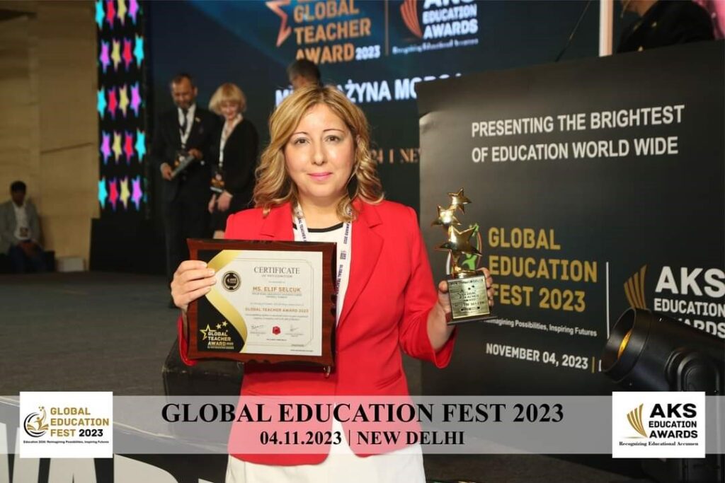 Denizli Pınar Baha Abalıoğlu Anadolu Lisesi öğretmeni Elif Selçuk, mesleğine sağladığı katkılarla eğitimin Nobeli olarak bilinen “Global Teacher Awards-Küresel Öğretmen” ödülünü alarak, Türkiye’yi Delhi’de temsil eden 5 öğretmenden biri oldu.