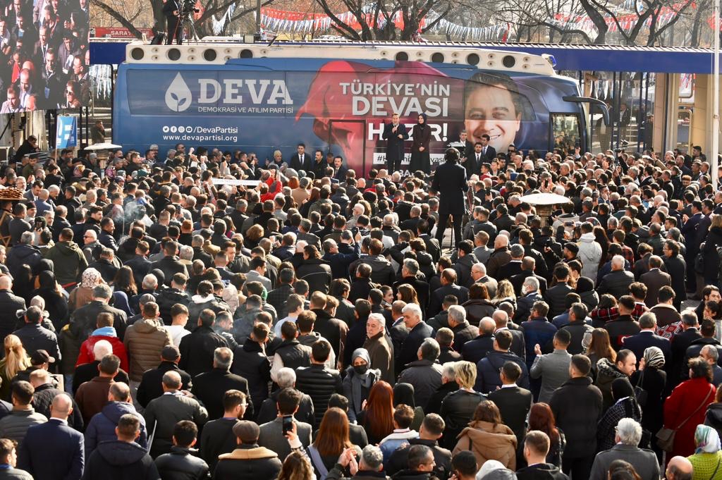 Deva Parti Genel Başkanı Ali Babacan konuşmasında şunları söyledi; “2001’de birlikte yola çıktığımız Recep Tayyip Erdoğan sözünden döndü. Şah Cihan gibi, külliyenin tepesine çıktı ve ‘Yıkın bunu’ diyerek, kendisini oraya taşıyan demokrasiye gözünü dikmeye başladı. Aynı Mümtaz Mahal’in mezarı gibi. Artık Erdoğan için demokrasi, o harmoniyi bozan küçük bir ayrıntıydı çünkü. Adalet, ortak akıl, istişare, çoğulculuk hepsi; o harmoniyi bozan küçük ayrıntılardı. Kendisine oy veren milyonlarca seçmenle beraber yola ne için çıktığını unuttu. Ben bu hikâyeyi kabul etmiyorum. Biz yola çıkarken ulaşmak için çabaladığımız özgürlüklerden, ileri demokrasiden, evrensel hukuk değerlerine olan sadakatten, çoğulculuktan, katılımcılıktan vazgeçmedik, vazgeçmeyeceğiz. O ne yaptı? Hak ve özgürlükleri ezdi geçti. Son dönemde her yerde aynı kelimeyi duyuyorum. Konya’da iki çay bir kekin hesabını yapan genç kardeşimden, Diyarbakır’da gün sonu raporuna bakan esnaf arkadaşımdan, Bağcılar’da sabahın karanlığında okula giden liseli öğrenciden, apartmanın posta kutusunda istiflenmiş faturalarda, kendi adını arayan babadan hep aynı kelimeyi duyuyorum.