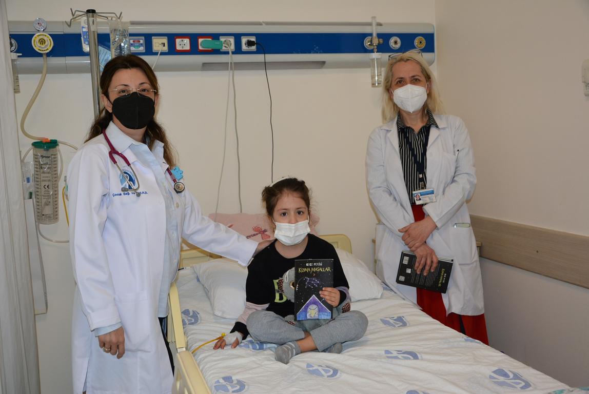 Çocuk Sağlığı ve Hastalıkları katında kitap dağıtımına Çocuk Kardiyoloji BD. Anabilim Dalı Başkanı Prof. Dr. Dolunay Gürses de eşlik etti. Çocuklarla sohbet etme imkanı da bulan Doç. Dr. Acımış öncelikli bir anne olduğu için en başta kızının ve çocukların isteklerini düşünerek bu kitabı yazdığını, çocukların sevincine ortak olduğu için mutlu olduğunu belirterek emeği geçen herkese teşekkür etti.