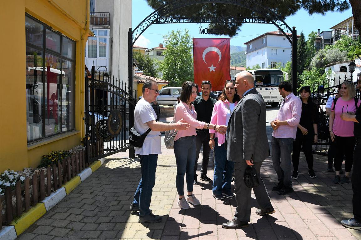 Pamukkale Üniversitesi (PAÜ) Fin-Edebiyat Fakültesi Tarih Bölümü Eskiçağ Tarihi Anabilim Dalı Başkanı Prof.Dr. Yusuf Kılıç, Bölüm Farabi Koordinatörü Murat Orhun, Öğretim Üyesi Gülseren Mutlu rehberliğinde gerçekleştirilen Buldan gezisinde yüksek lisans ve doktora öğrencileri, ilçenin tarihi ve kültürel değerlerinde yerinde gördü. İlk olarak kazı çalışmaları devam eden Tripolis Antik Kenti’ni ziyaret eden Tarih Bölümü yüksek lisans ve doktora öğrencileri, daha sonra BELKÜM’de Belediye Başkanı Mustafa Şevik’in konuğu oldular. Başkan Şevik, doktora öğrencilerine ilçenin geçmişi binlerce yıl öncesine dayanan dokuma kültürü, kültür mirası ve özgün mimarisiyle dikkat çeken evleri ile doğal güzellikleriyle ilgili bilgi verdi. Başkan Şevik, “Dokumanın Başkenti Buldan” adlı kitabını misafirleri için imzalarken, ilçenin geleneksel el dokuması ürünlerinden hediye etti. Buldan dokumasının dünü ve bugününün sergilendiği eski cezaevini gezen PAÜ Tarih Bölümü Doktora öğrencileri, Doğa harikası Süleymanlı Yayla Gölü’nü görme imkanı buldu.