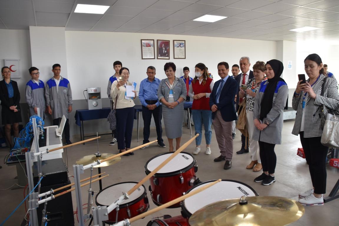 Okul Müdürü Tagayeva Gulmira, Öğretmenleri Ermekbaeva Akzhunis, Valitova Liliya, Turlibekova Asilzat’tan oluşan heyet DOSTEK Koleji’nin derslik ve laboratuvarları ile sosyal tesislerini gezerek incelemelerde bulundular, verilen eğitim ve atölyelere ilişkin bilgi aldı. Sınıflarını ziyaret ettikleri öğrencilerin projelerini yakından incelediler. DOSTEK Koleji’ni çok beğendiklerini ve örnek alınması gereken bir okul olduğunu ifade eden ziyaretçilere günün anısına hediyeler takdim edildi. Kazakistan heyeti de DOSTEK Koleji Müdürü Sadadettin Dumlu’ya bir tablo hediye etti. Batı standartlarını aratmayacak donanıma sahip okulun dersliklerini ve atölyelerini büyük bir hayranlıkla gezen Kazakistan heyetinde yer alan okul müdürü ve öğretmenleri Güzel ve keyifli geçen DOSTEK inceleme gezinin ardından yaptıkları açıklamalarda; “ Burada herşey öğrenciler için düşünülmüş. Her şey batı standartlarında ve dünyanın gelmiş olduğu gelişmişlik seviyesine uygun olarak kurgulanmış. Öğrencilerinizin bu imkanlara sahip olması gerçekten memnuniyet verici. Güzel bir eğitim sistemi. DOSTEK’in kurucu vizyonunu alkışlıyoruz. Türkiye’deki mesleki ve teknik eğitim veren okullar ve eğitim sistemi hakkında çok güzel şeyler duyduk. Türkiye’nin de tecrübelerinden faydalanmak ve kendi eğitim modelimizi oluşturabilmek için buradayız. Sizlerin tecrübelerinden faydalanmak istiyoruz.” şeklinde konuştular.Kazakistan’dan gelen meslektaşlarına güzel bir ev sahipliği sunan DOSTEK Koleji müdürü Sadadettin Dumlu heyeti okulu gezdirdi ve öğrencilerinin yaptıkları çalışmalar hakkında bilgiler verdi. DOSTEK Koleji olarak standardizasyonun çok ötesinde bir eğitim anlayışını Denizli’ye kazandırdıklarını, burada eğitim gören gençlerin ülke geleceğine yeni ufuklar, yeni keşifler ve yeni bir vizyon katacaklarının altını çizen ve mesleki alanda Türkiye’nin ihtiyaç duyduğu kalifiyeli eleman ve ara eleman ihtiyacına cevap verecek gelecek nesilleri yetiştirmek amacıyla kurucu yöneticiler eşliğinde öğretim kadrosuyla başarılı bir çalışma yürüttüklerini söyleyen Müdür Dumlu: “Buradaki gençlerimiz, ekonomi ve iş dünyasının yetişmiş, becerikli ve hünerli bireyleri olarak aramıza katılacaklar” dedi. Üreten toplumun temelini oluşturan meslek liselerinin öneminin de her geçen gün daha fazla anlaşılır hale geldiğine dikkat çeken Müdür Dumlu; buradaki her bir öğrencinin kendini değerli hissettiğini belirtti. Dumlu, güzel bir eğitim sisteminin, güzel bir toplumun var olmasına, toplumdaki güzelliklerin bulaşmasına sebebiyet vereceğini ifade etti.