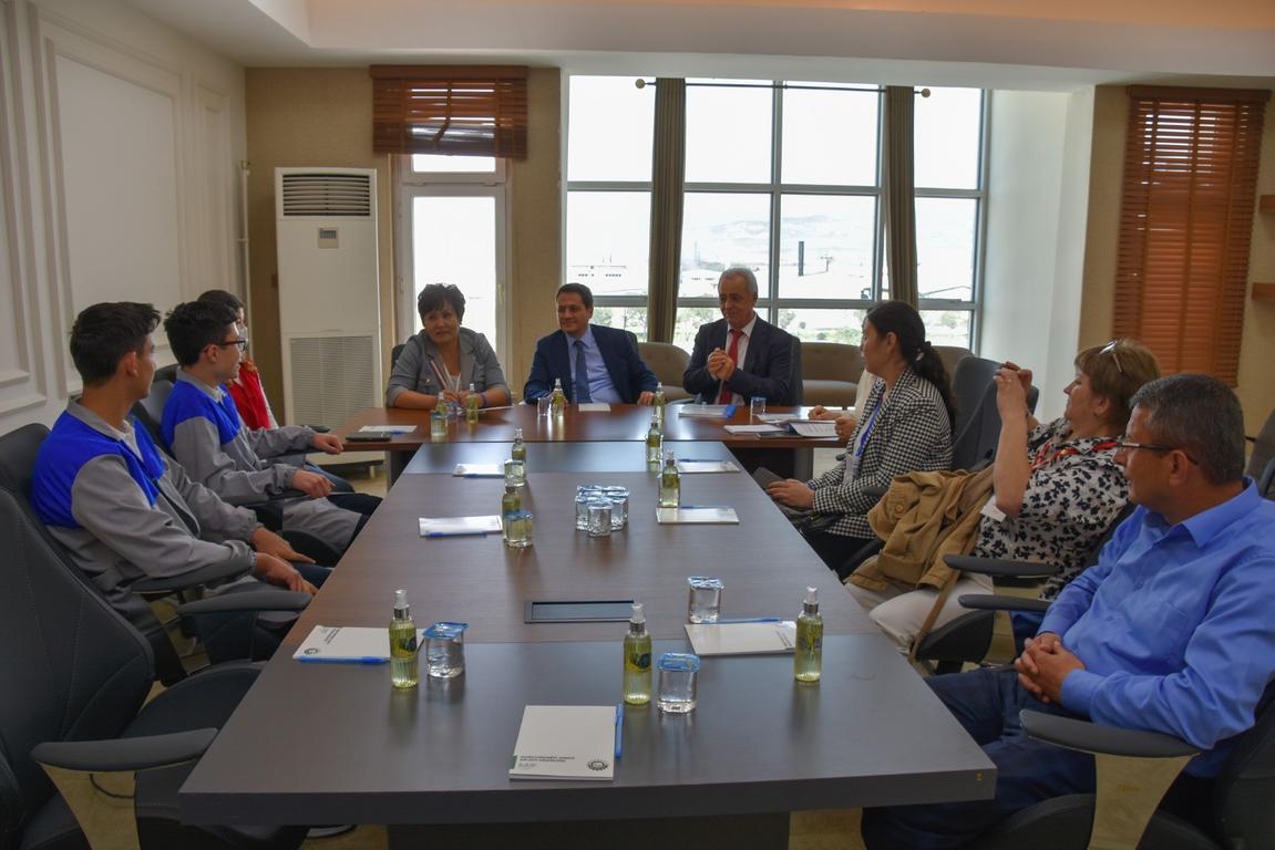 Kazakistan Çimkent şehrinde organize sanayi bölgesindeki teknik ve mesleki kolej müdürü ve öğretmenleri Kazakistan Cumhuriyeti Denizli Fahri konsolosu Okan Oğuz rehberliğinde Özel Denizli Organize Sanayi Bölgesi Teknik Koleji Mesleki ve Teknik Anadolu Lisesini (DOSTEK) ziyaret etti.