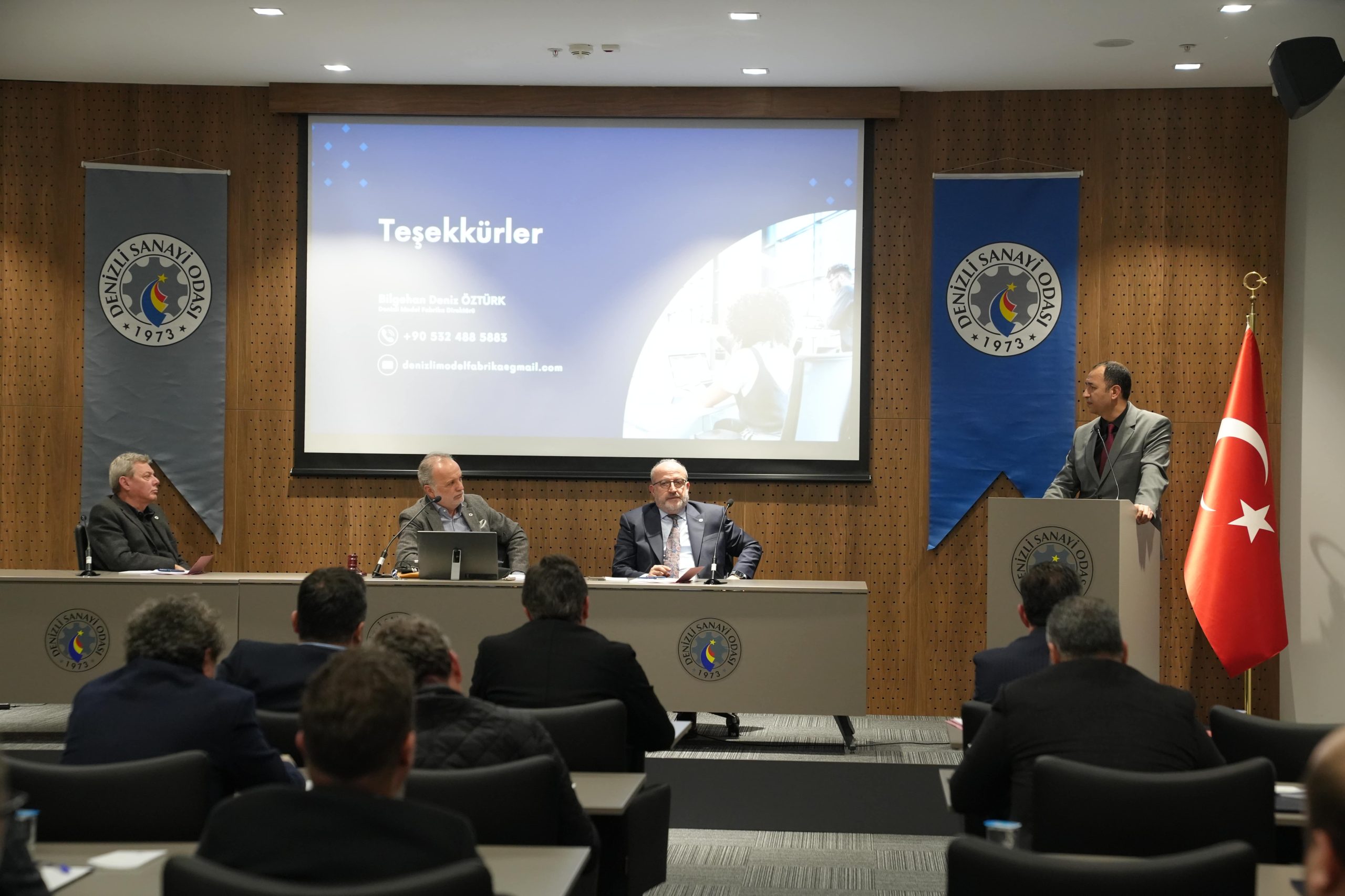 Meclis Toplantısı, Denizli Model Fabrika Direktörü Bilgehan Deniz Öztürk’ün, Model Fabrika faaliyetleri ve gelinen son durumun ele aldığı sunum ile devam etti. Model Fabrika’nın yalın üretim modellerinin uygulanması, stratejik yatırımlar ve eğitim vizyonu gibi temel hedeflerinden söz eden Öztürk, yerli üretimi güçlendirmeye yönelik stratejik adımlar, Model Fabrikaların önemi ve kriz dönemlerinde alınması gereken aksiyonlarla ilgili değerli bilgiler paylaştı.