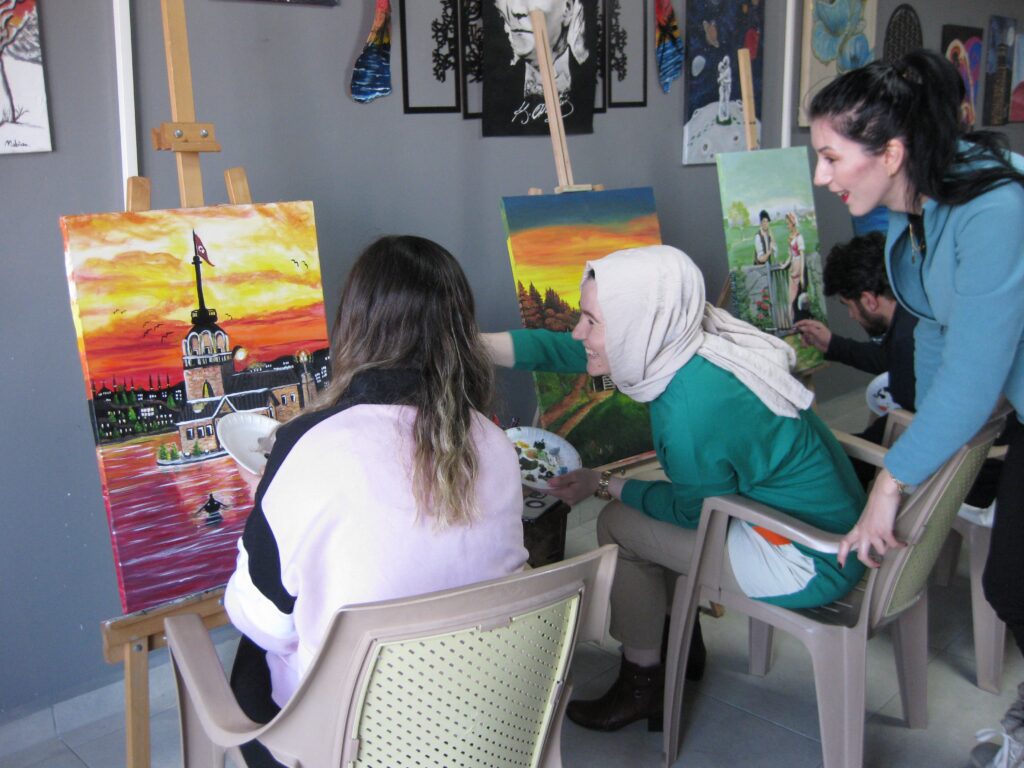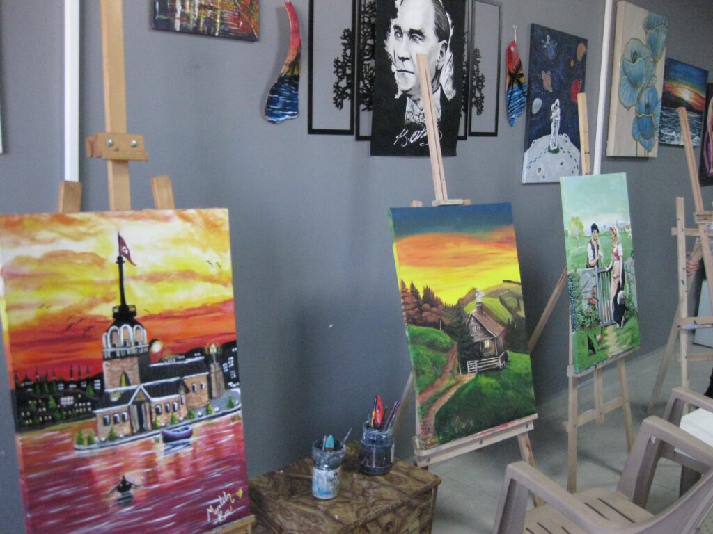 Pamukkale Halk Eğitim Merkezi bünyesinde açılan ‘Elma Sanat Atölyesi’ resim kursuna katılan kursiyerler, gizli yeteneklerini keşfederek resim yapmanın inceliklerini öğreniyorlar. Resim yapmanın ipuçlarını öğrenen kursiyerler, kısa süre içerisinde sergi açabilecek düzeyde resim yapma yeterliğine sahip oluyor.